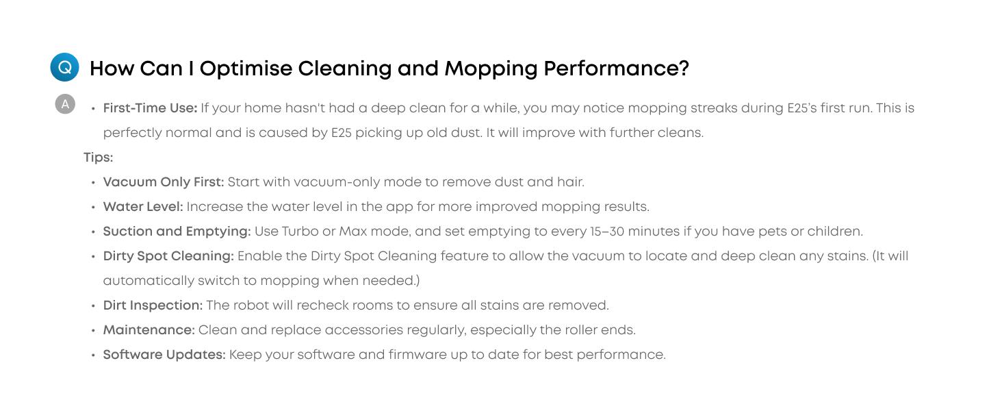 Professional Power for a Spotless Finish: With 20,000 Pa Turbo Suction, the E25 delivers high-performance cleaning across hard floors and carpets-removing embedded dust, debris, and pet hair with ease.