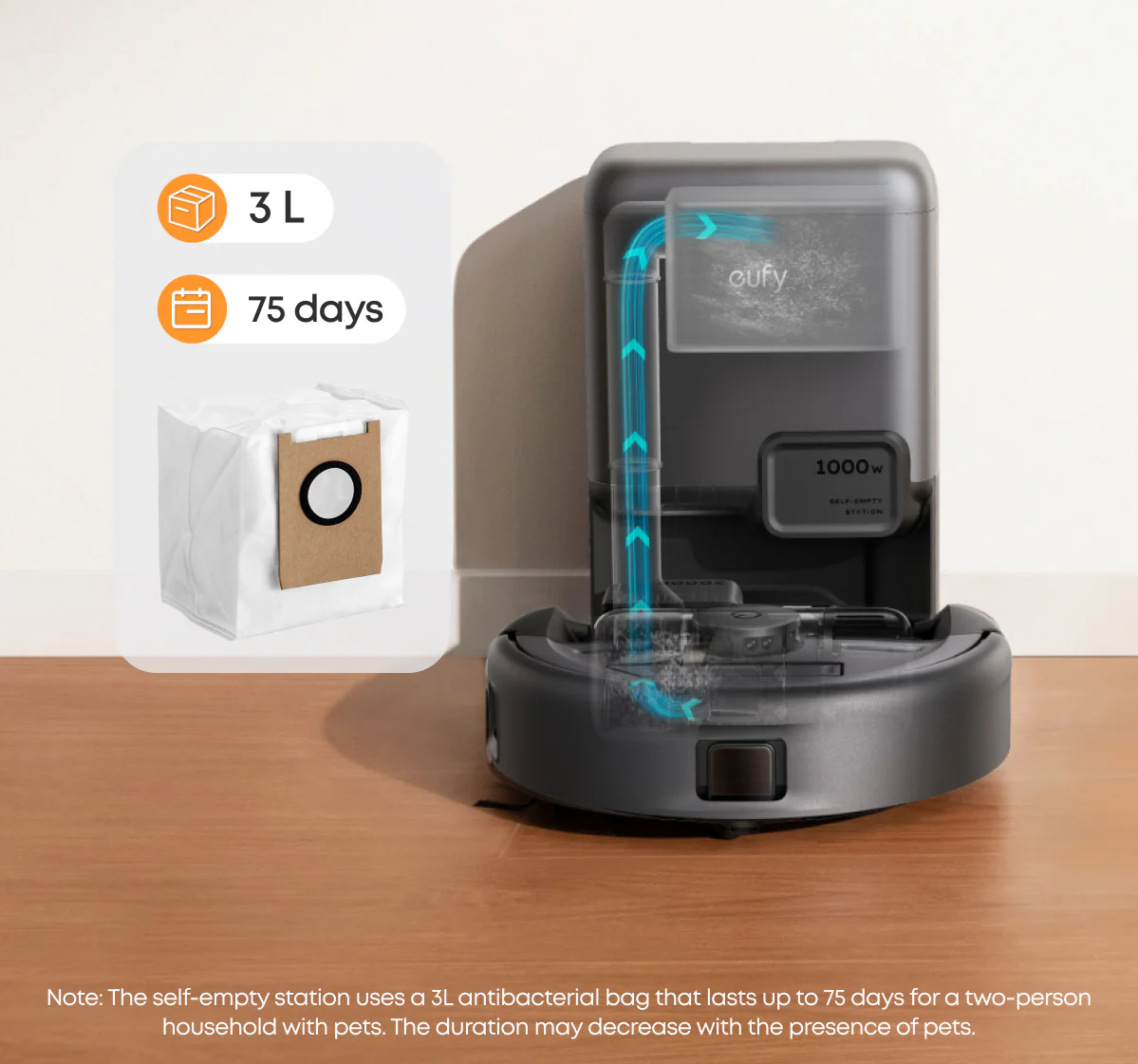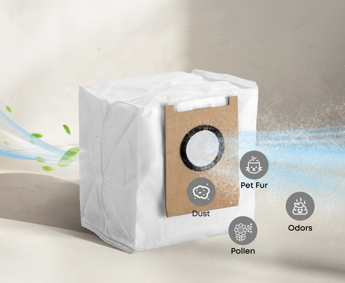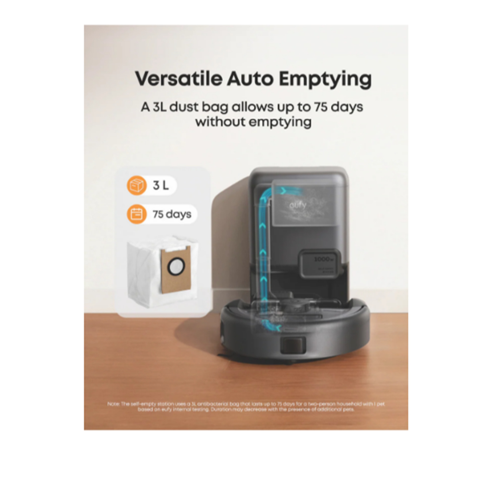 Versatile Auto Emptying: With a spacious 3L dust bag, enjoy up to 75 days of hands-free cleaning. The 3-pack replacement set ensures long-term maintenance convenience.