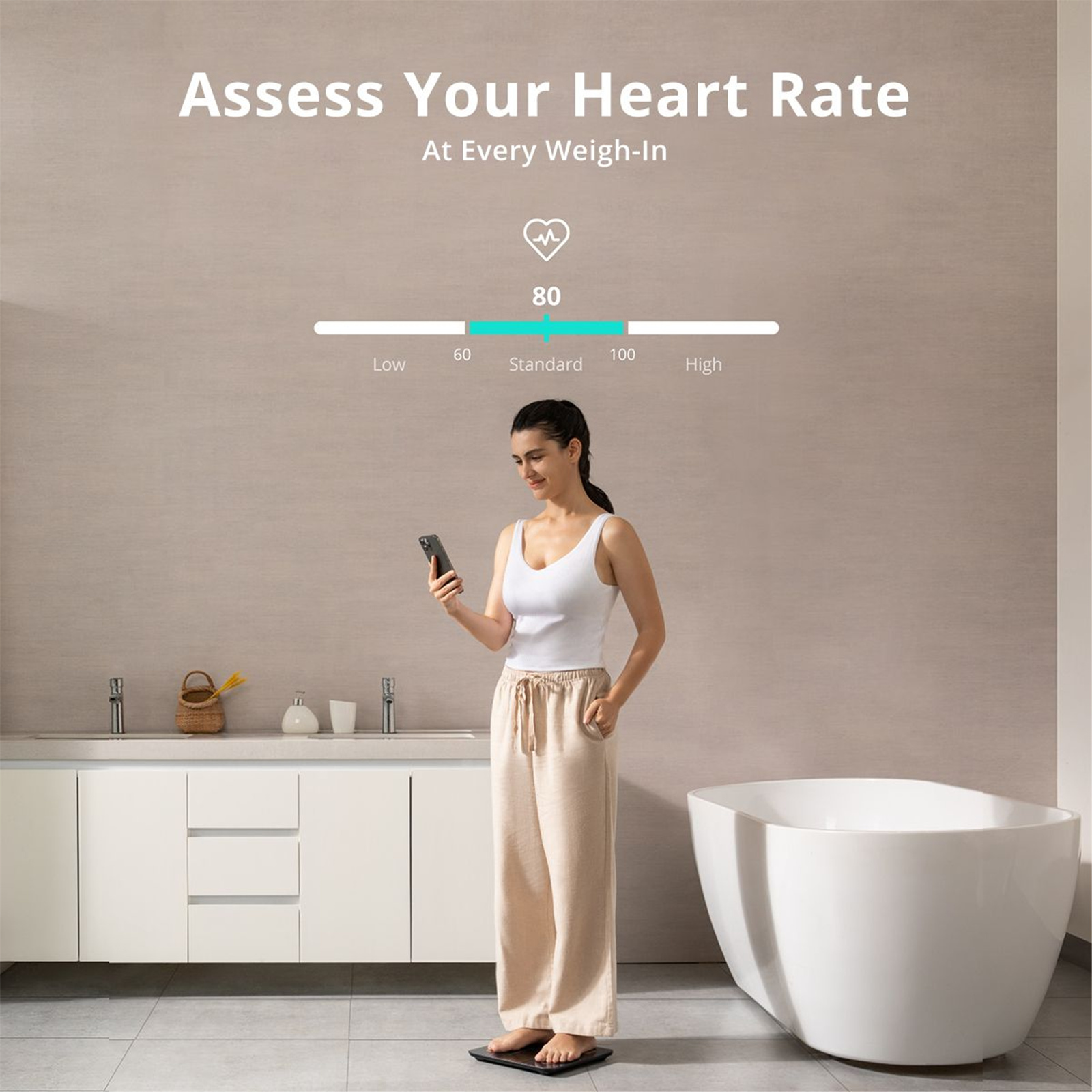 - Insightful Measurements: Get 16 detailed measurements of your body including weight, heart rate, body fat, BMI, muscle mass, bone mass, and more. Ultra-sensitive E-shaped sensors detect subtle weight changes accurately up to 50 g (0.1 lb) so you can celebrate even the little wins.