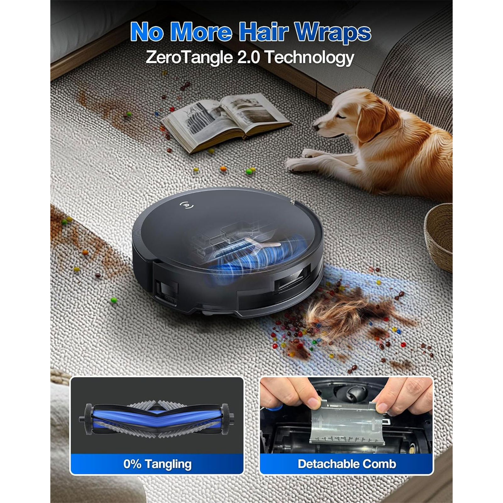ZeroTangle 2.0 redefines cleaning efficiency with its innovative Triple-V Anti-Tangle Structure. This three-pronged approach uses 45° V-shaped bristles to lift hair, a V-shaped spiral brush to gather it centrally, and a V-shaped comb to remove it - achieving a near 0% hair tangle rate. Unlike other solutions, ZeroTangle 2.0 effortlessly handles both long and short hairs, including pet hair, ensuring thorough cleaning without interruptions or frustrating maintenance. Experience hassle-free cleaning in even the most hair-prone homes with ZeroTangle 2.0.