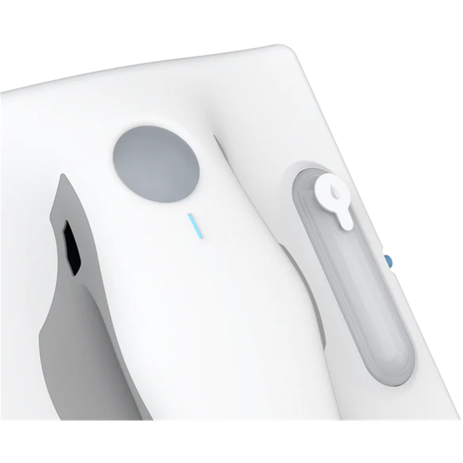 The HUTT W8 window cleaning robot features a "whale spout" dual water spray system, allowing water solution or dry cleaning methods. An 80 ml water tank enables the robot to clean up to 35 m² (~377 ft²) and is visible so you can see when you need to top it up.
