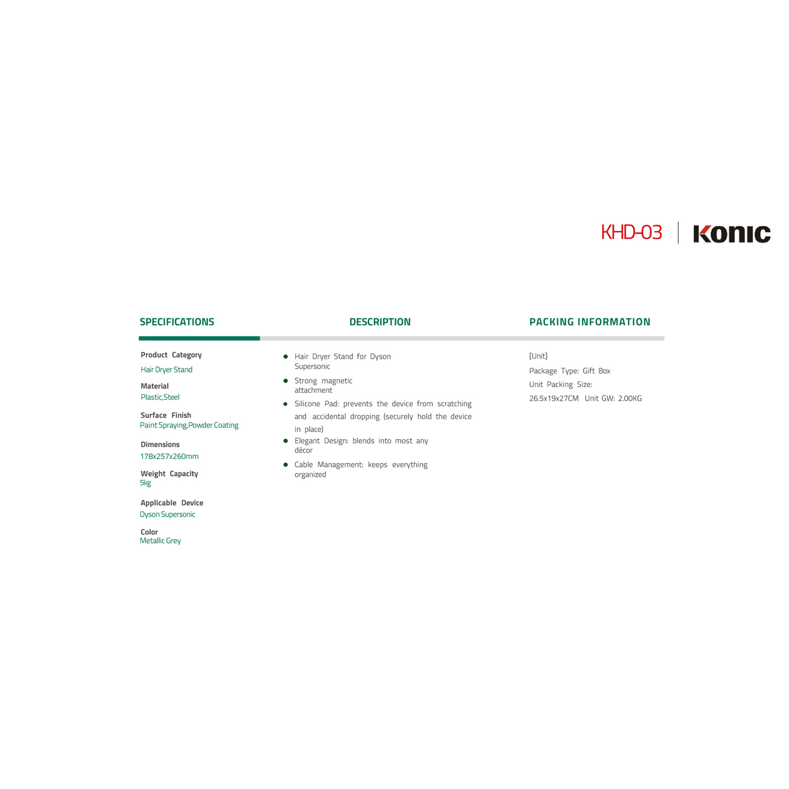 Product URL: https://www.pbtech.co.nz/product/HOMKNC0003/KONIC-Hair-Dryer-Desktop-Stand-Mount-Holder---for