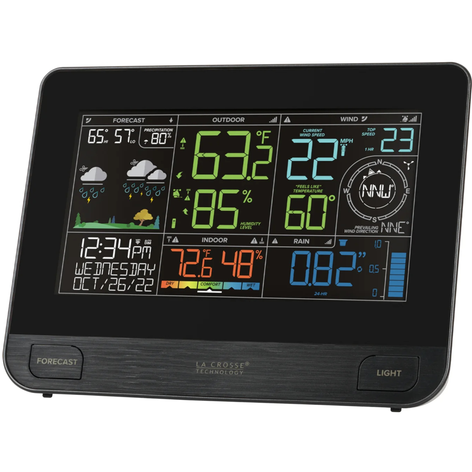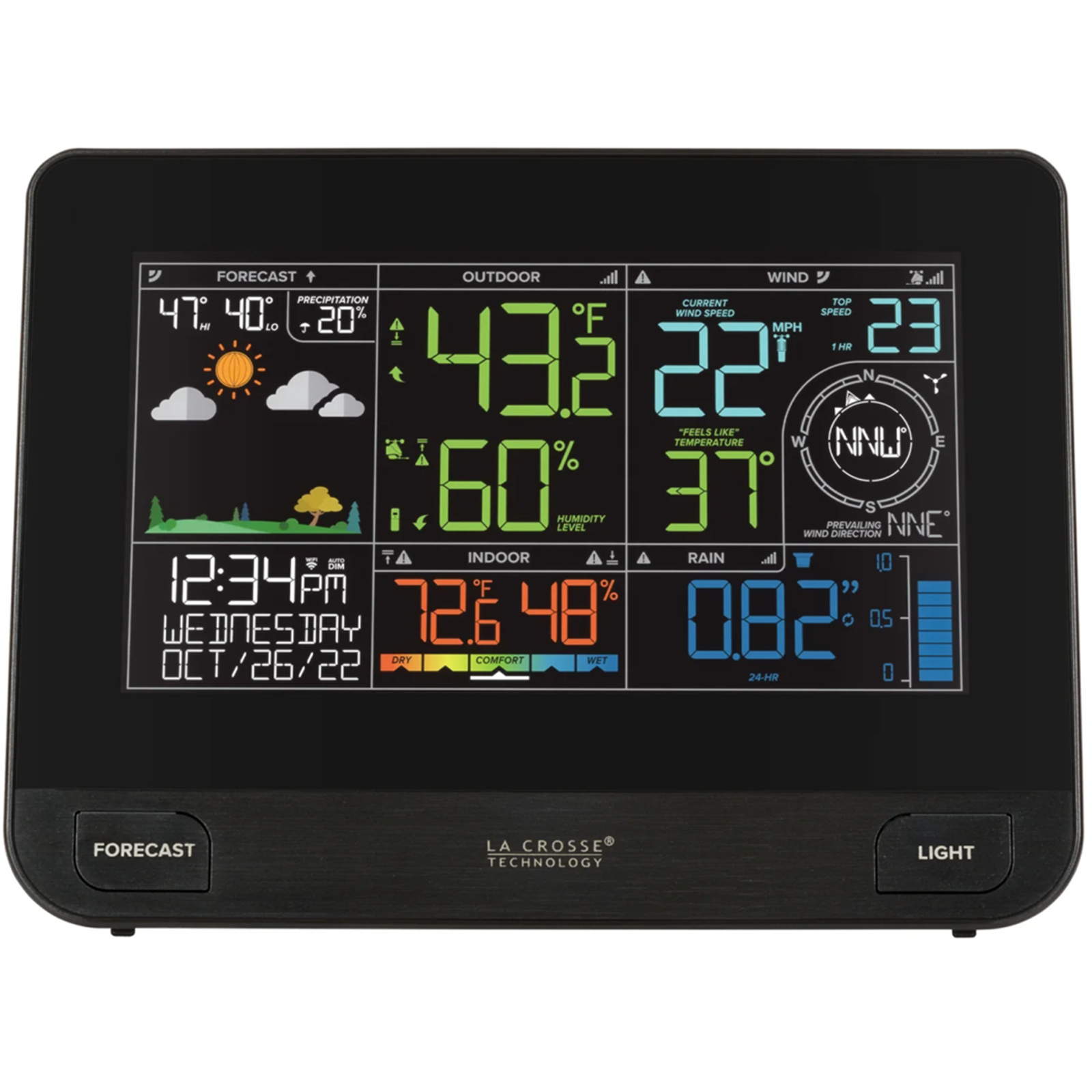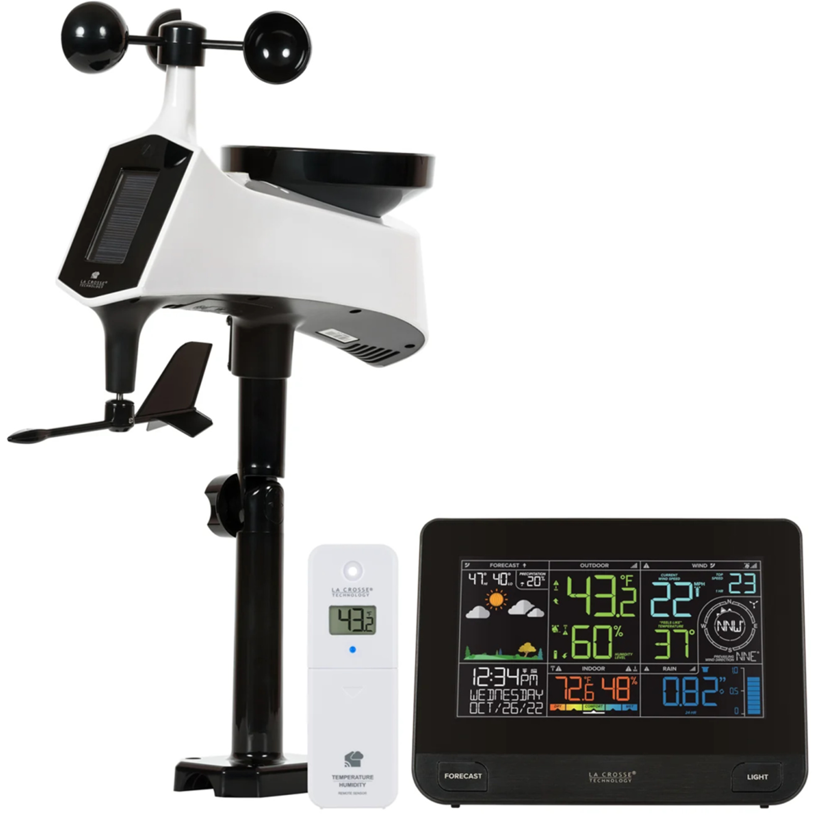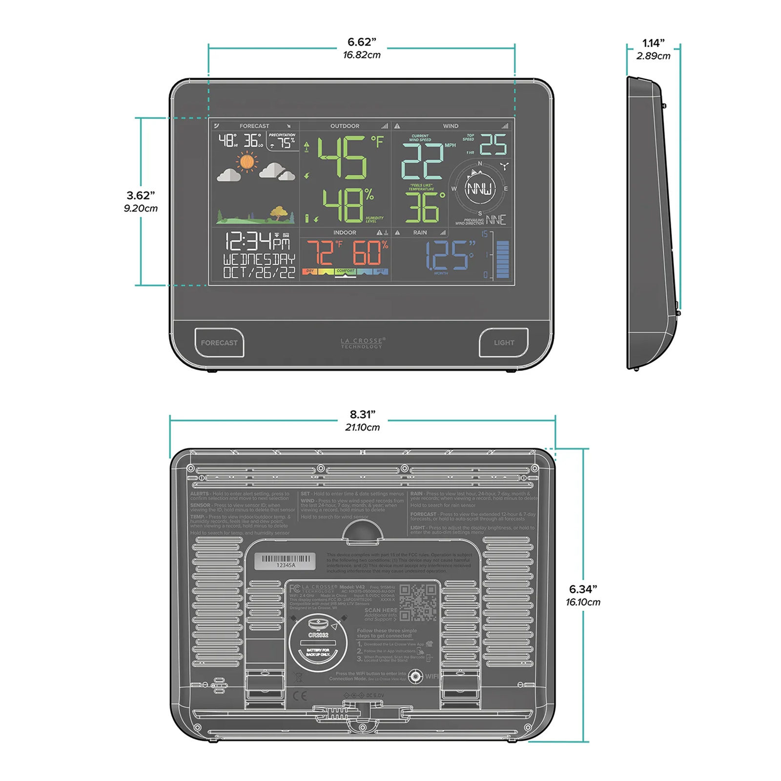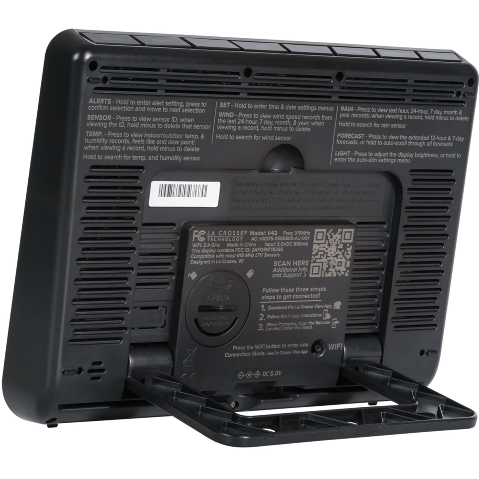 Start DOING WEATHER RIGHT with La Crosse Technology's latest V42 Wi-Fi Professional Weather Station. Designed for weather enthusiasts, the included sensors track wind speed, wind direction, rainfall, temperature, and humidity, making the V42 a complete package! The dynamic high-definition color display conveniently shows all of your indoor and outdoor data points along with both daily and hourly AccuWeather forecast predictions. Combined with our La Crosse View app for mobile monitoring, alerts, and history trends the V42 Wi-Fi Professional Weather Station is sure to be a welcome addition to any home.