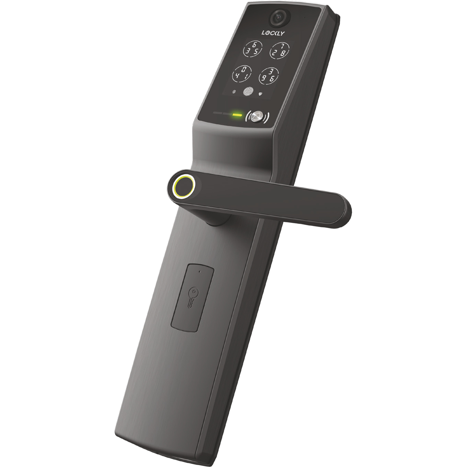 Lockly LUX Vision Smart Latch Lock - Space Grey Built-in Video Doorbell / 3D Fingerprint / RFID / Fob Key / 2-Way Audio / Includes WiFi & Door Sensor