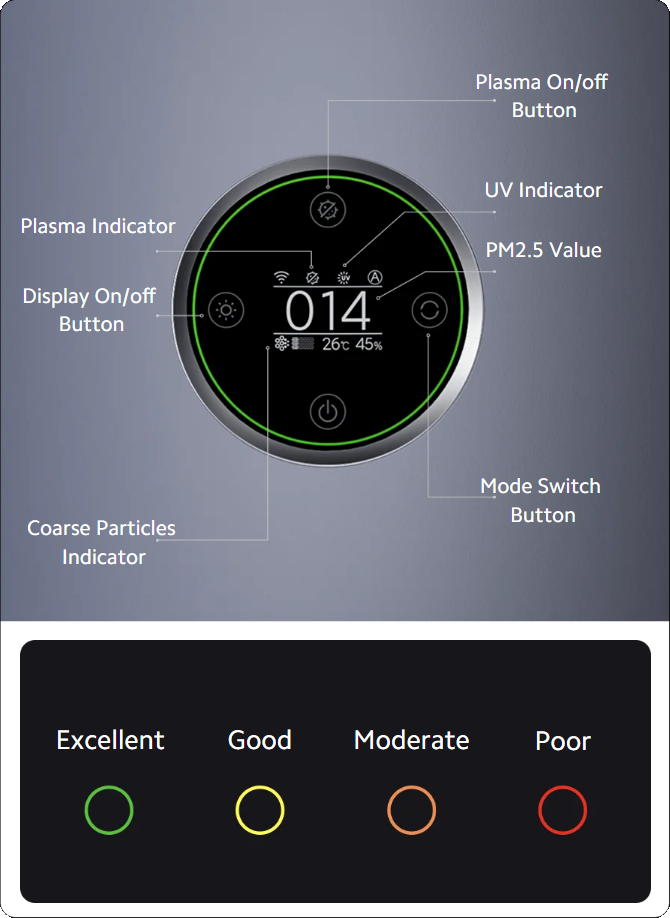 Real-time air quality detection and automatically adjusts the purification speed in Auto Mode.