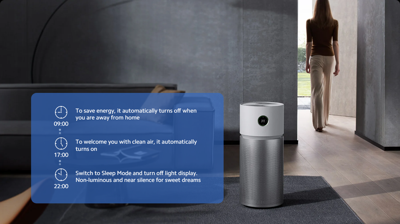Customise the coverage area to meet cleaning needs for different rooms. Set the purification mode based on scenarios. Automatically adjusted in time.