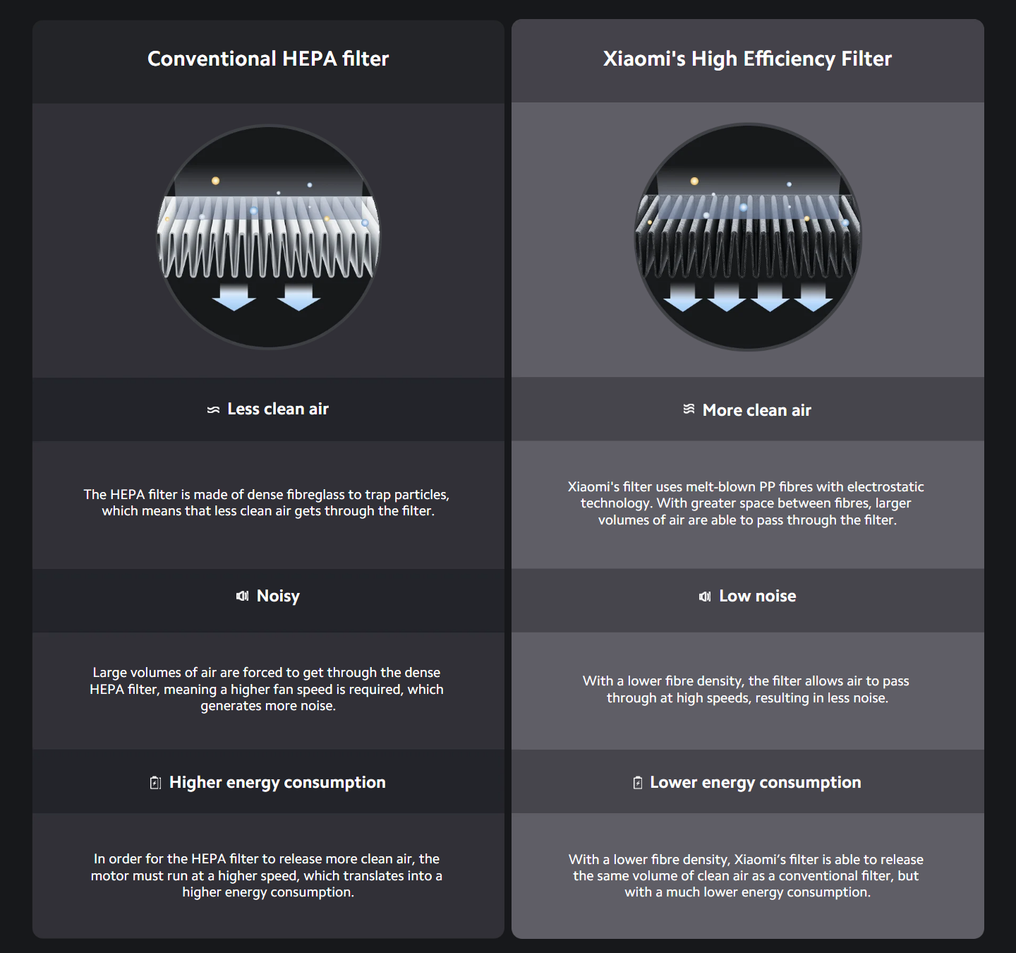 The difference between Xiaomi's High Efficiency Filter and a conventional HEPA Filter