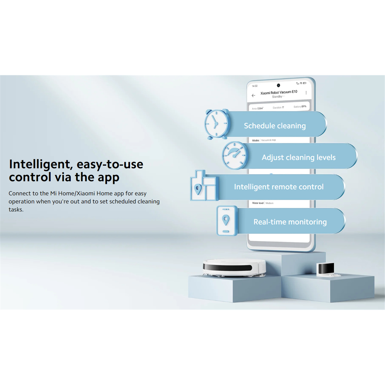 4000Pa Suction Power - 2-in-1 Sweeping & Mopping Control Via Mi Home App - Triple Filtration - Integrated Rubber Main Brush - With Measured Water Discharge for Controlled Mopping