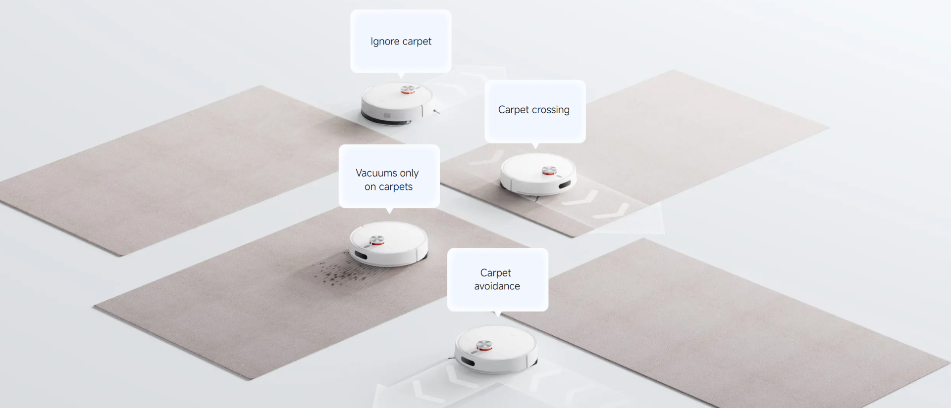 Thorough deep cleaning with two passes and strong suction for effective dust removal. Choose your cleaning preferences in the Xiaomi Home app, and tailor settings for each carpet for a worry-free clean.