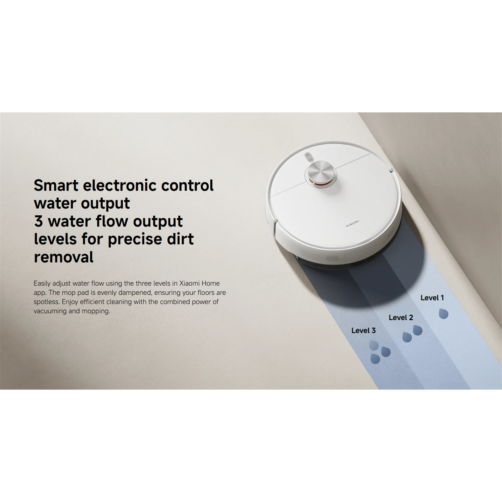 Easily adjust water flow using the three levels in Xiaomi Home app. The mop pad is evenly dampened, ensuring your floors are spotless. Enjoy efficient cleaning with the combined power of vacuuming and mopping.