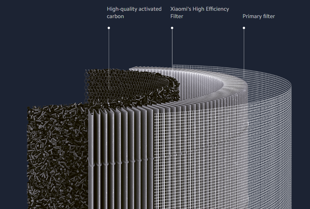 A primary filter, Xiaomi's High Efficiency Filter and a high-quality activated carbon filter work together to purify your air and keep you healthy.