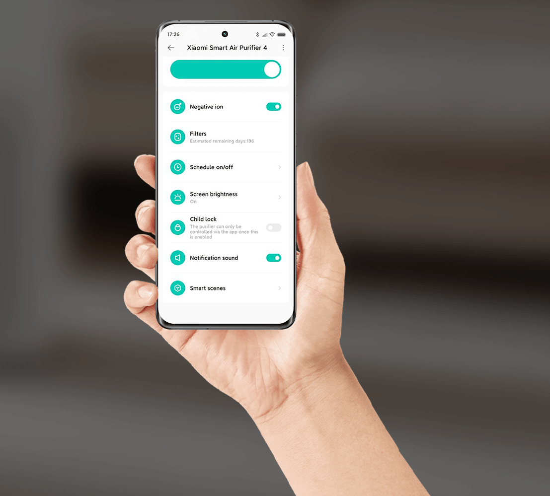 * 22,000cm² high-efficiency filter paper: The surface area of filter paper used on the Xiaomi Smart Air Purifier 4 high-efficiency filter is 22,000cm². Data from Smart Mi Lab, and may vary slightly due to differences between individual products.