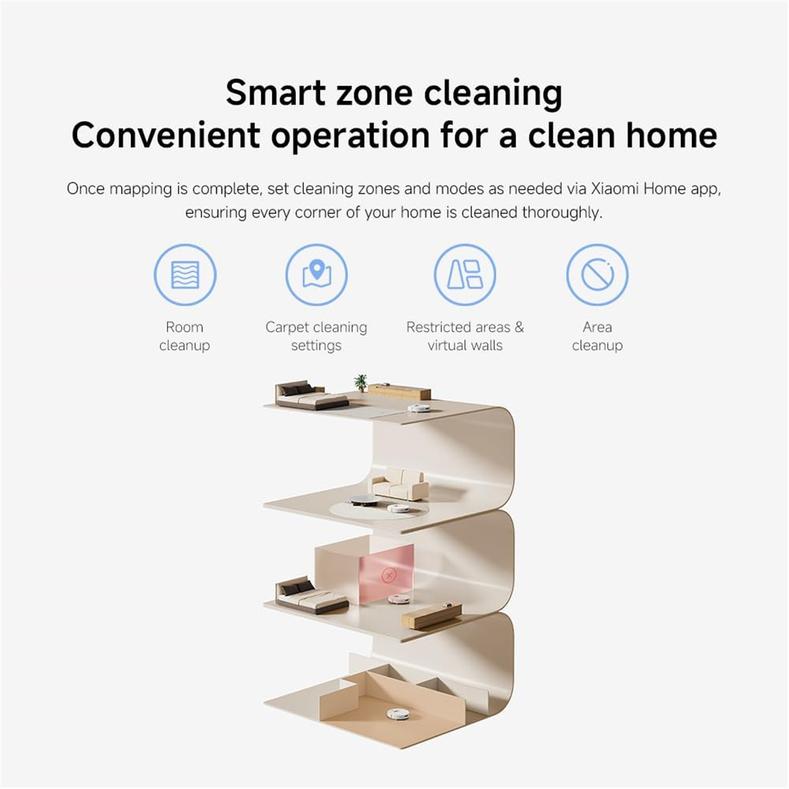 Once mapping is complete, set cleaning zones and modes as needed via Xiaomi Home app, ensuring every corner of your home is cleaned thoroughly.