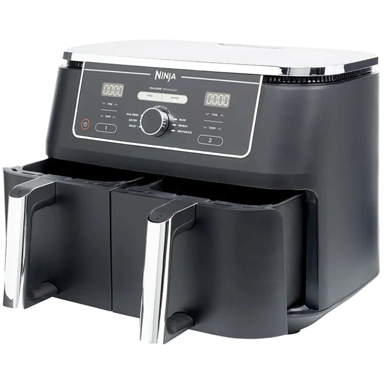 DualZone Technology allows you to choose between the Smart Finish feature, which unlocks cooking 2 foods 2 ways that finish at the same time, and the Match Cook feature, which easily copies settings across zones for full 9.5 litre capacity meals.