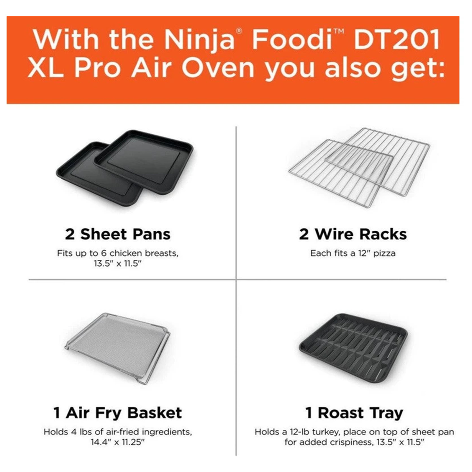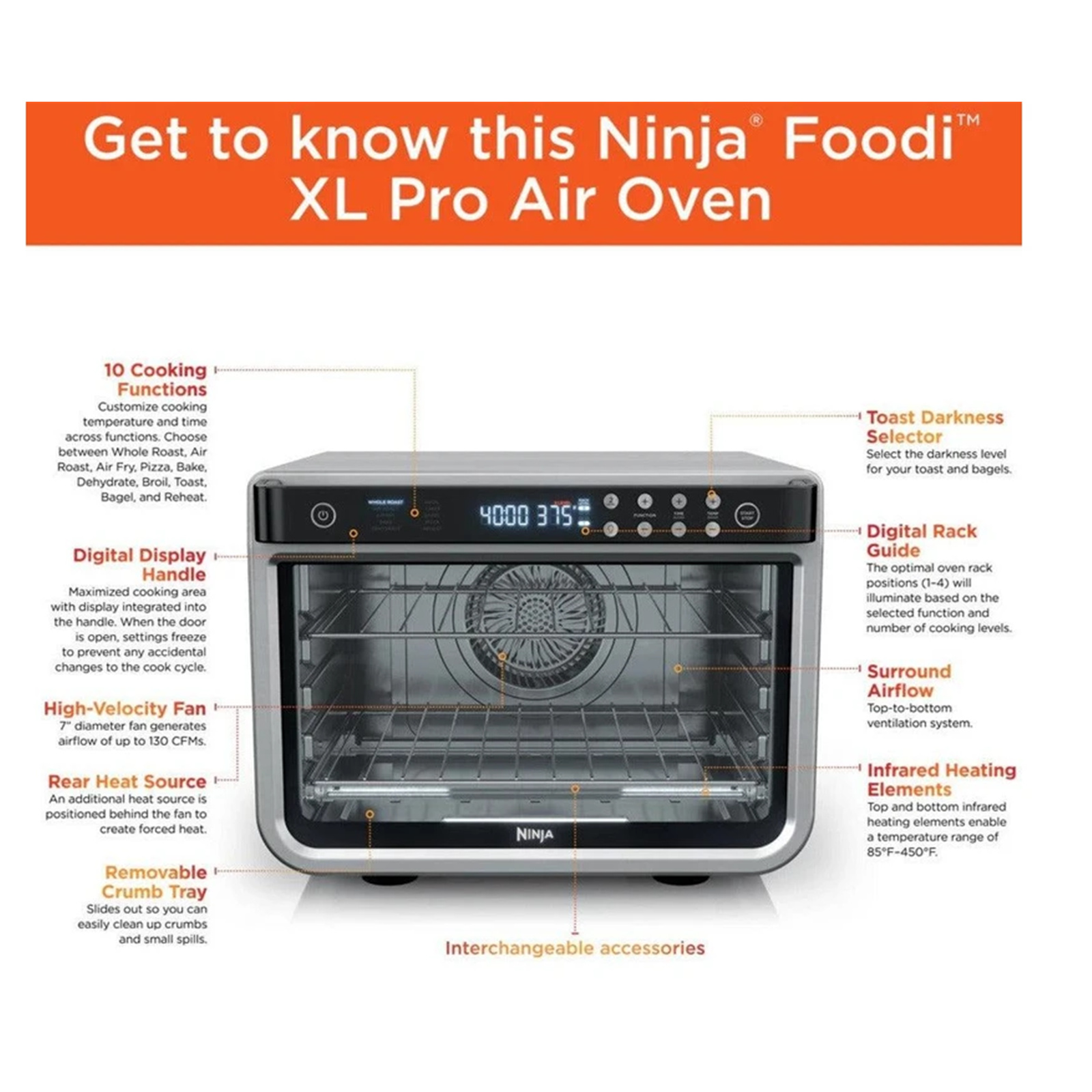 Ninja Foodi 10-in-1 Air Fry XL Oven True Surround Convection for Faster Crispier Results - Quick Family Meals on 2 Levels - No Rotation Required - DT200