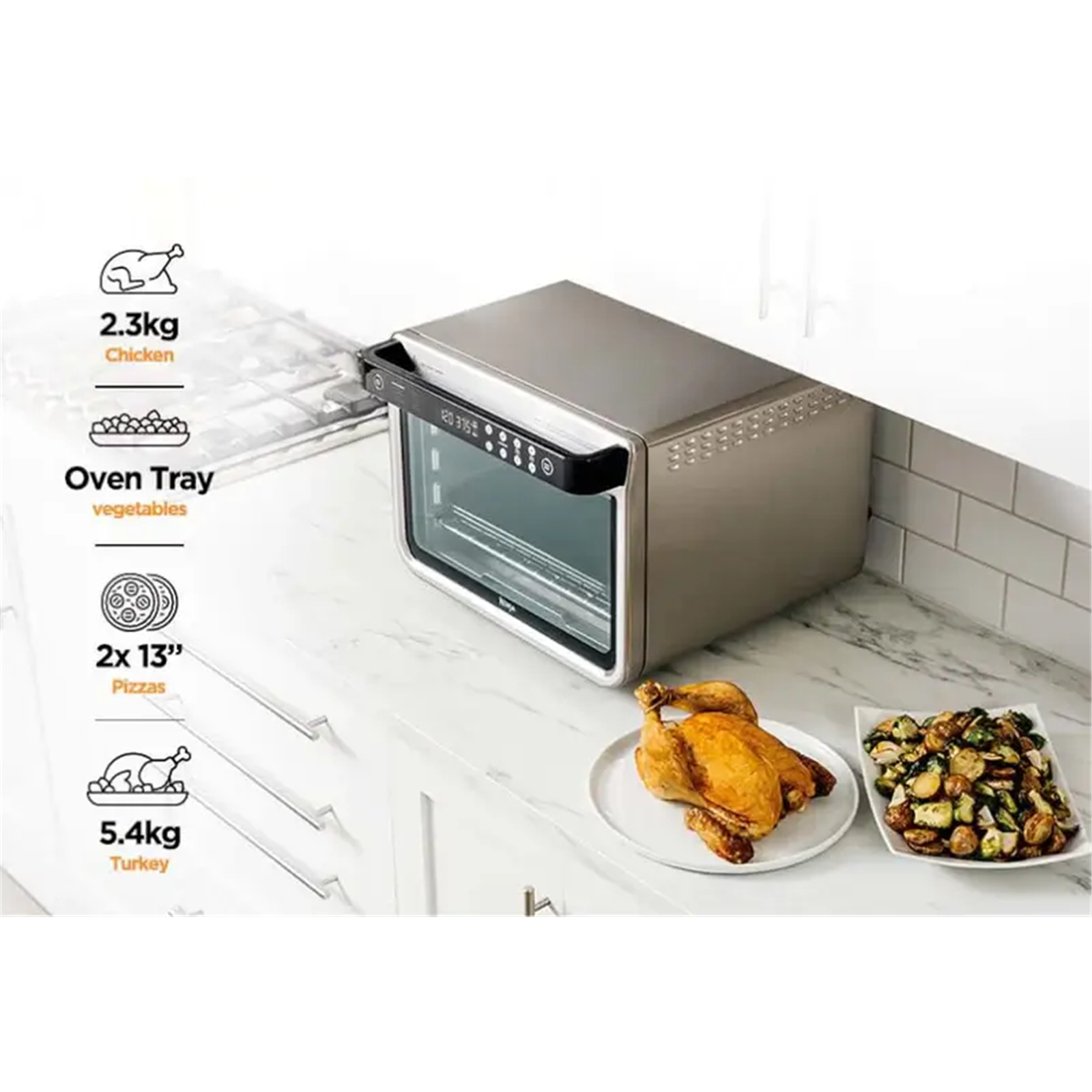 2-level even cooking, no rotating required - fit a 2.3kg chicken and an oven tray of vegetables, 2x 13" pizzas or a 5.4kg turkey.