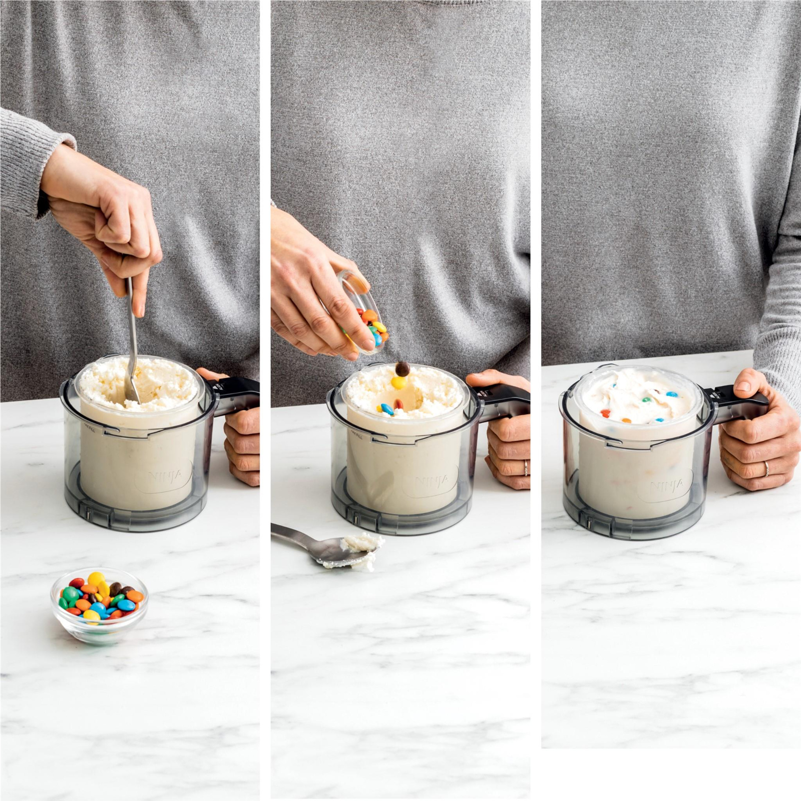 Customise your flavour and texture by mixing in your favourite chocolate, nuts, candy, fruit, and more to personalise any CREAMi® treat.