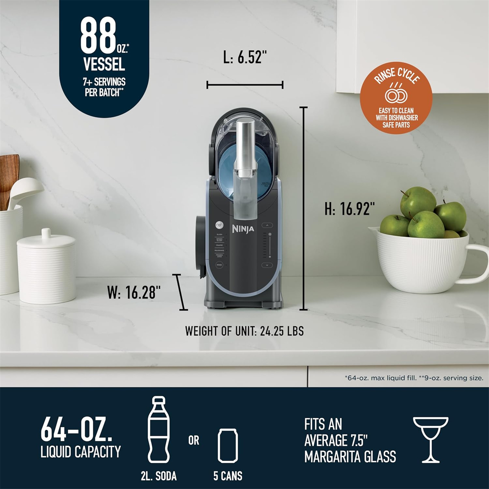 Easy to fill, top up and clean. Creates slush quickly and keeps drinks frozen for up to 12 hours.