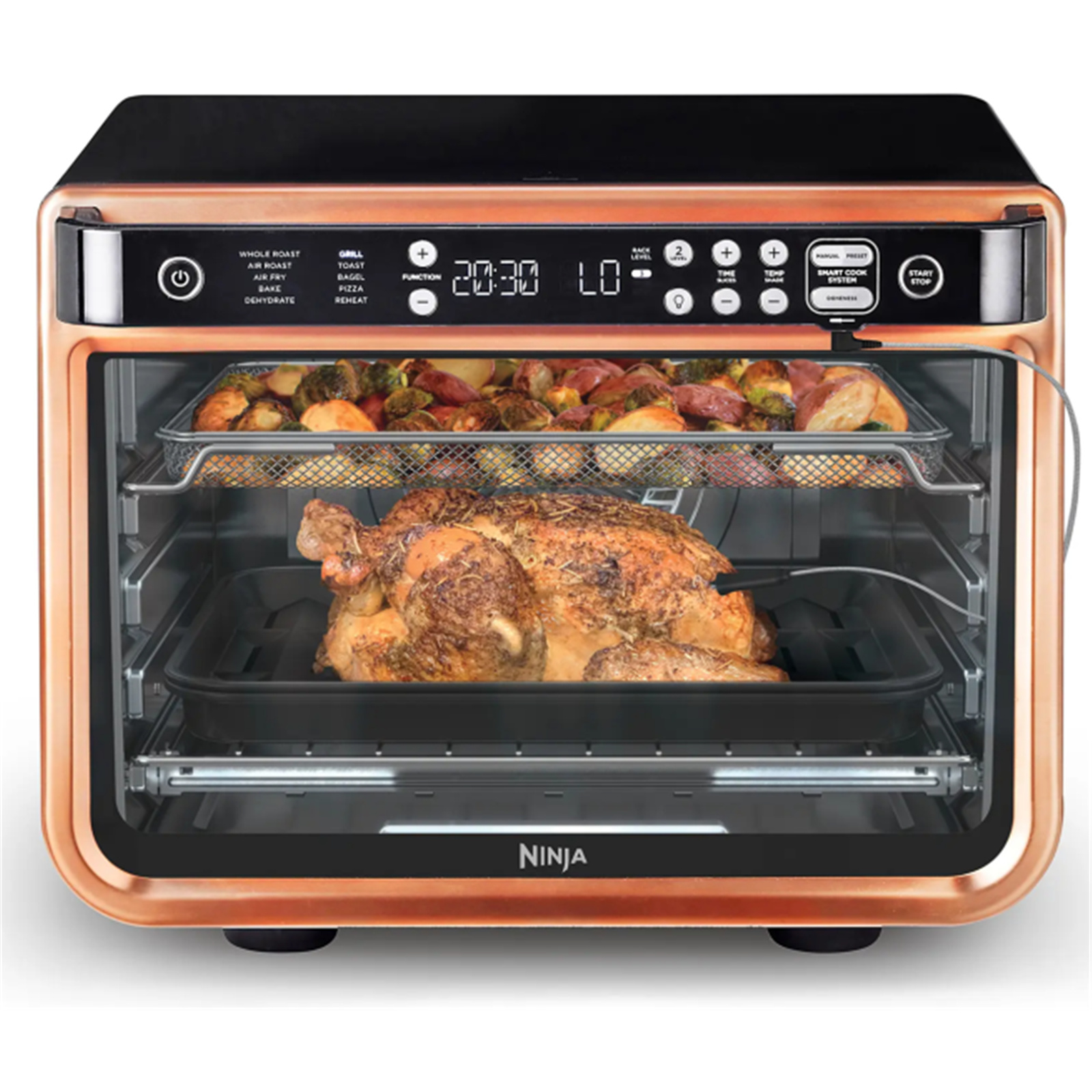 Meet the Ninja Foodi 10-in-1 Smart XL Pro Air Fry Oven the smart extra-large toaster oven and air fry oven with True Surround Convection™, you get up to 10x the convection power of a traditional convection oven, so you can make quick family meals on 2 levels, no rotating required.