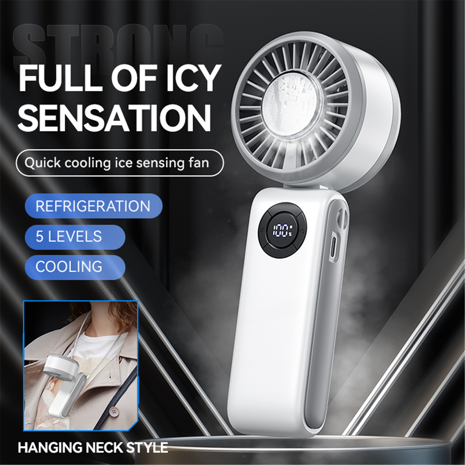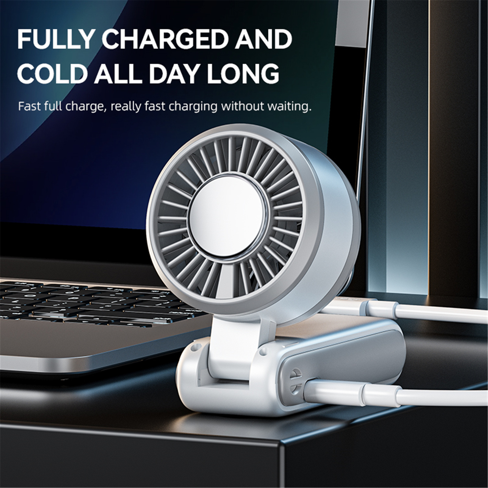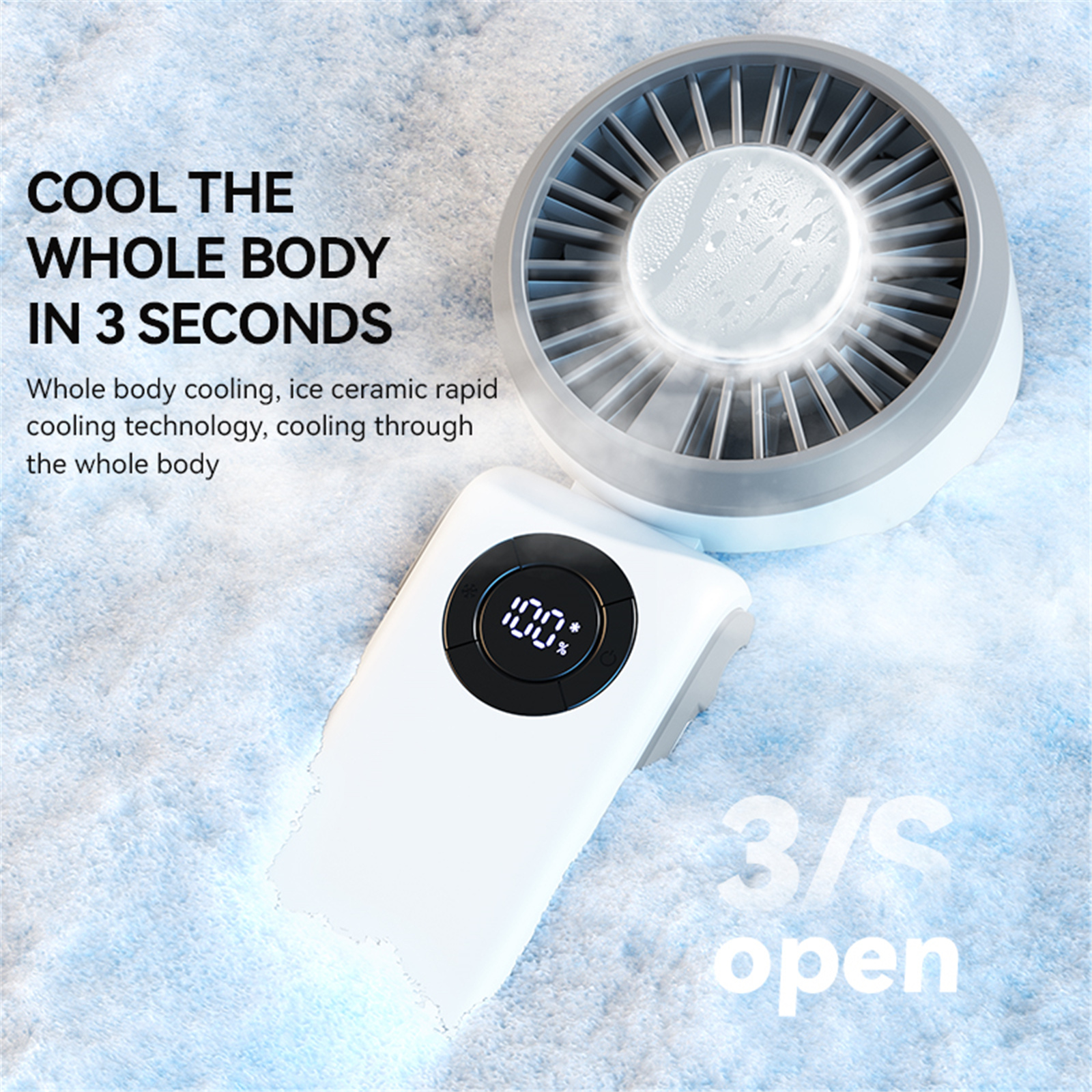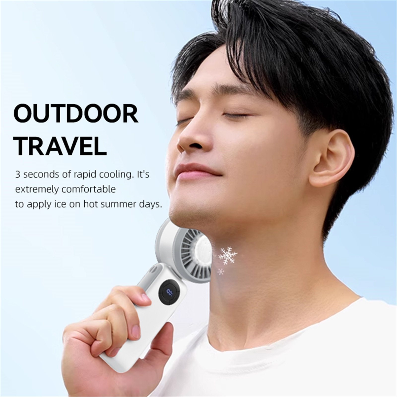 NoBrand Rechargeable Handheld Mini Fan Gray , 5 Speed Settings, 4,000mAh, Up to 2.5 Hour Operate, 200g Net Weight, Max 9600rmp Motor speed, Ice compress at middle Tier. Folderable. and Low Noise