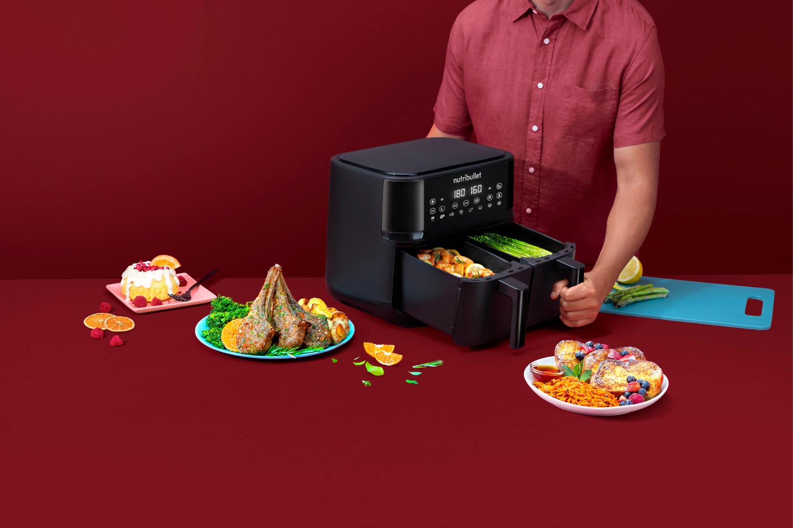 With 8 preset cooking programs the NutriBullet Twin Drawer Air Fryer lets you mix and match a wide array of main dishes, sides and snacks.