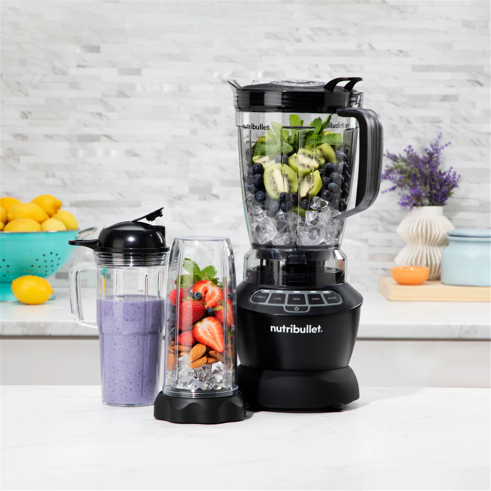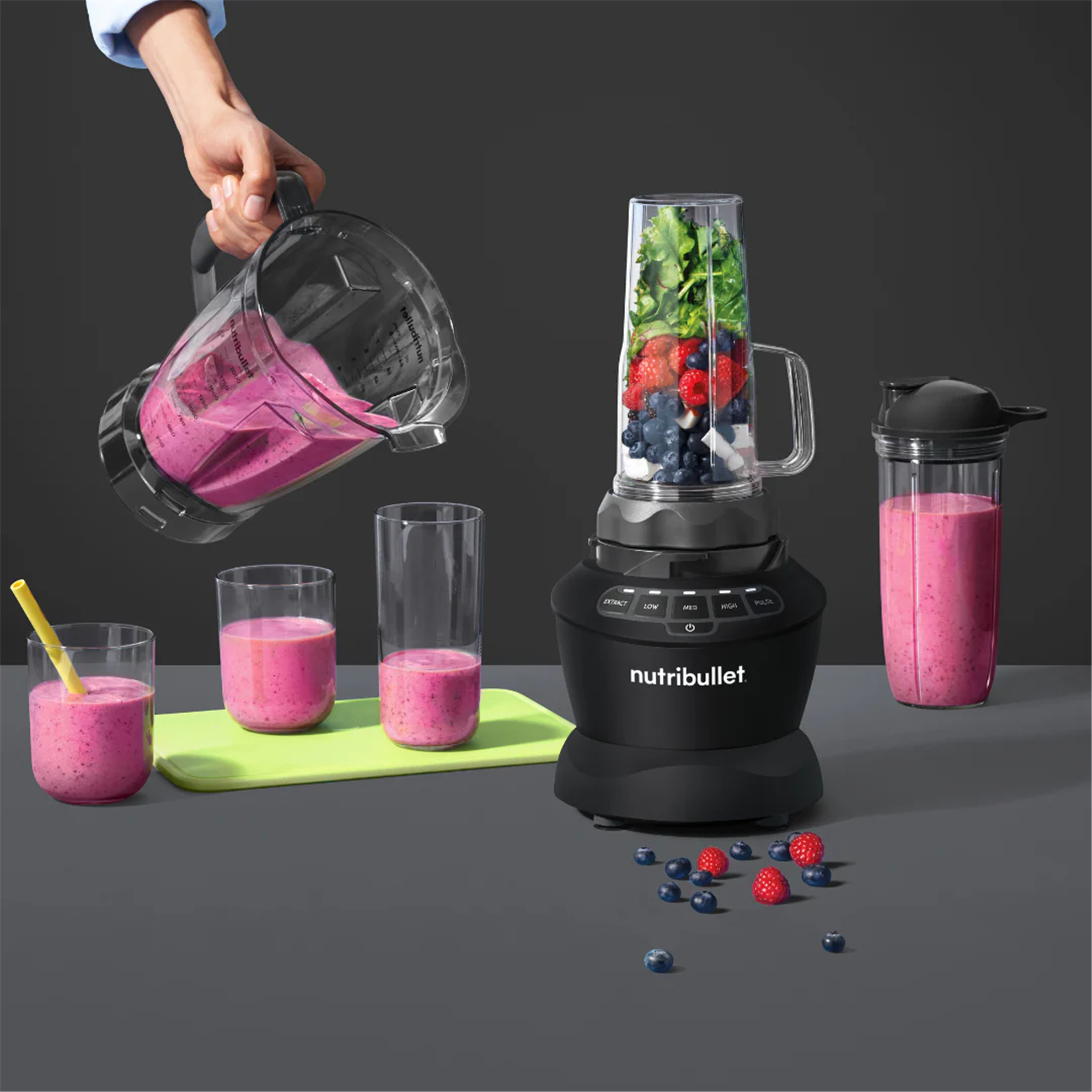 - You've Got Options - Extract multiple servings in our 1.8L blender pitcher, or fly solo with nutribullet® cups. We've got you covered either way