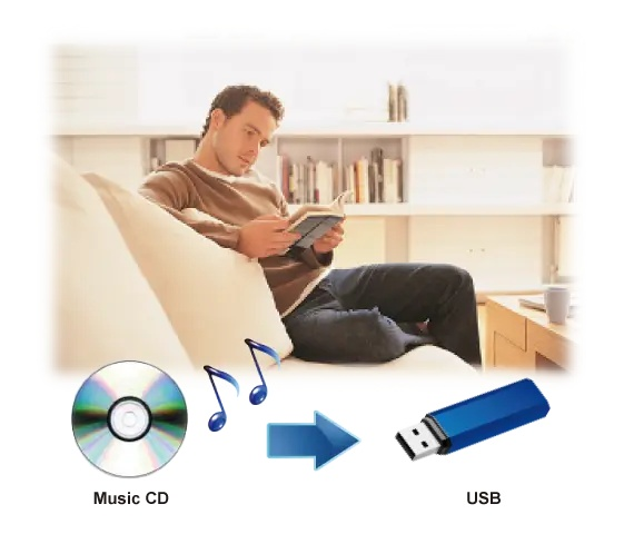 You are able to archive your favourite music CD on to a USB Flash Drive. You will be able to enjoy your music by PC, Portable Audio Player or other devices.