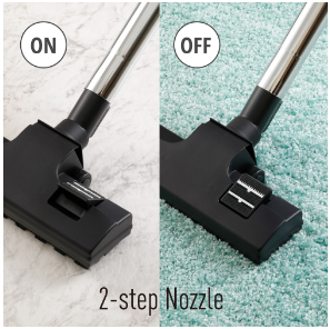 Simply turn ON or OFF the switch on the nozzle depending on the type of floor. ON extends the nozzle brush to gently clean tile. OFF retracts the brush to vacuum carpets.