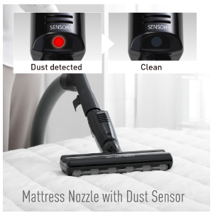 The dust sensor built into the Mattress Nozzle can detect fine dust particles as small as 70 micrometers to achieve a high efficient vacuuming experience.