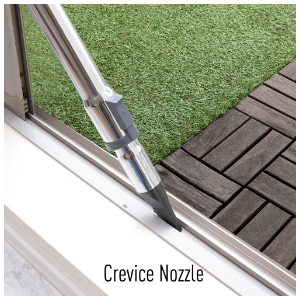 The Crevice Nozzle reaches under funiture and other narrow spaces to get at every speck of dust.