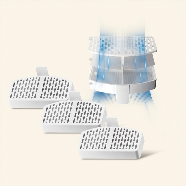 The 4-layer filter to effectively filters out hair, impurities, and harmful substances (like residual chlorine). Replace each month to ensure your pet drinks clean water.