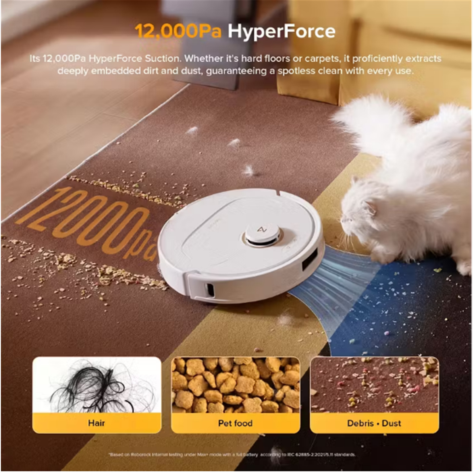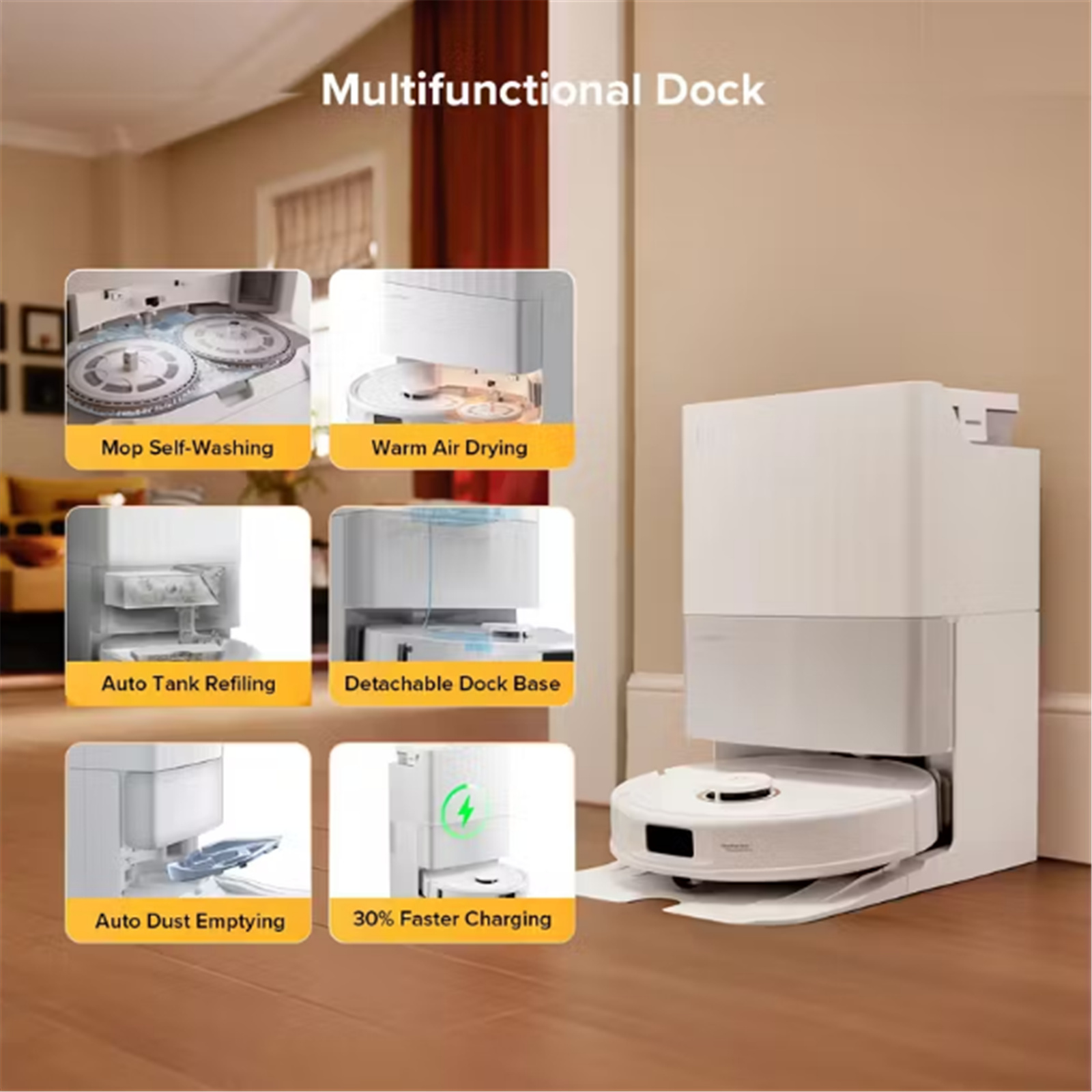12,000 Pa Suction Triple Anti-Tangle System - 30 Levels of Water Flow - LiDAR Navigation - Multi-level Mopping - 7 Weeks Auto Dust Empty - Detachable Dock Base
