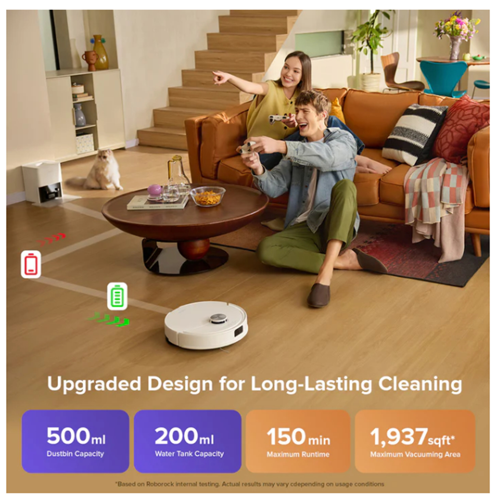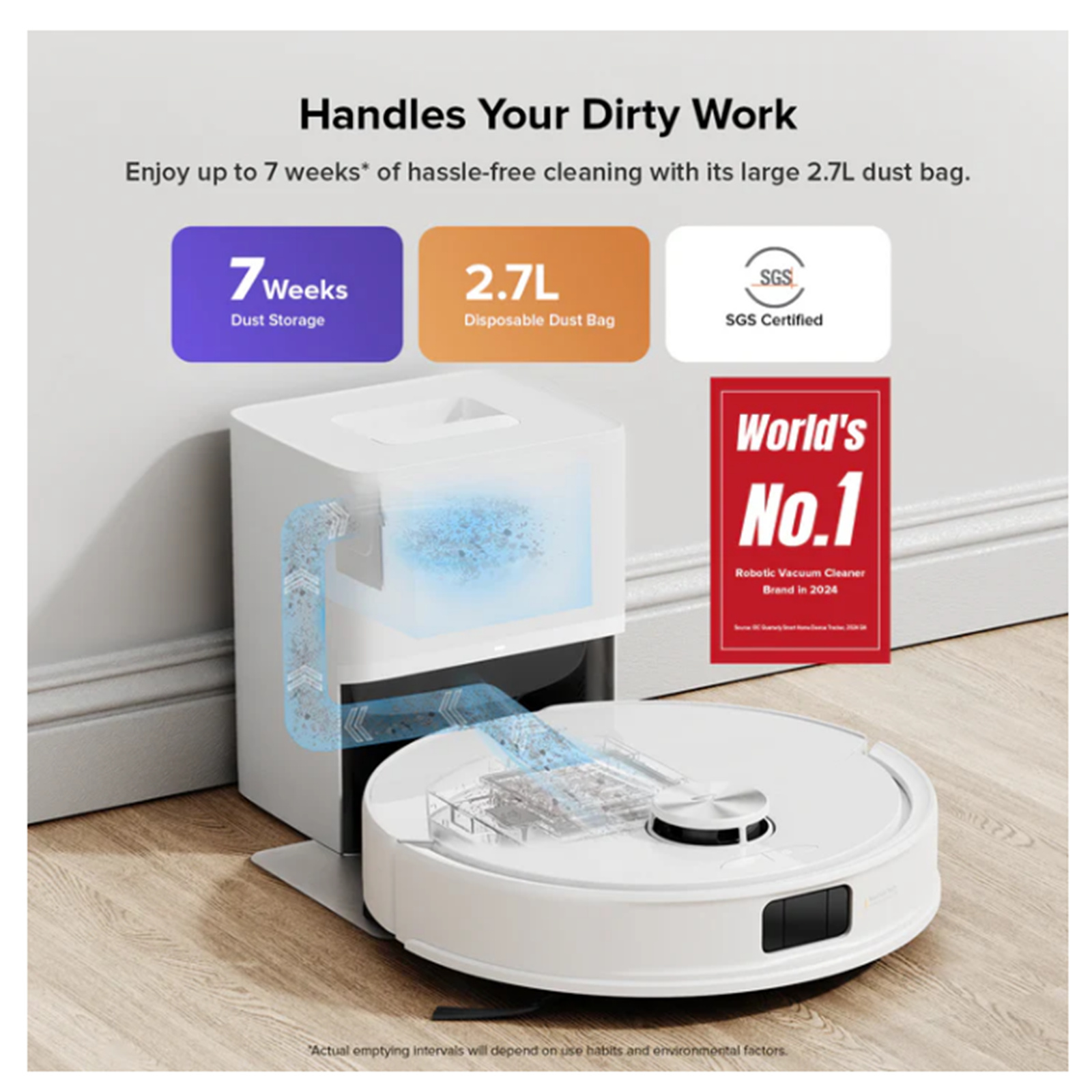 The Roborock Q10V+ features powerful HyperForce suction for exceptional cleaning performance. Its dual anti-tangle system and large dustbin reduce maintenance needs, making daily cleaning more convenient than ever.