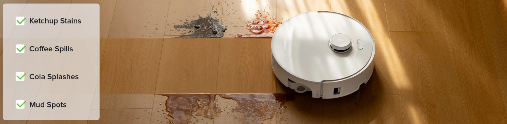 Powered by AI dirt recofnition, our adaptive cleaning system instantly identifies the type of mess in its path. For heavy dust, it boosts suction to capture every particle. For spills and wet stains, it swithces to mop only mode, lifting both side brushes and main brush to prevent cross contimination. From fine debris to stubborn liquid messes, it applies the prefect cleaning strategy every time.