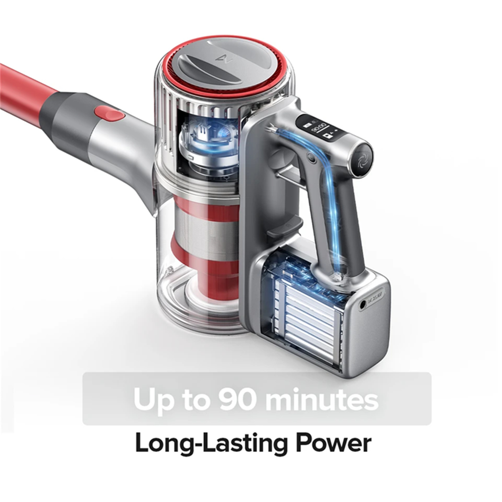 A 480W motor creates up to a massive 160AW3 of constant suction power4. Easily lifting dirt from floors and reaching deep into carpets, beds, and upholstery for better cleaning.