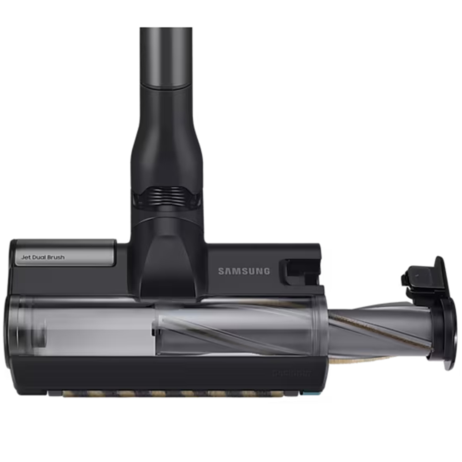 Enjoy outstanding cleaning on all floors. The Jet Dual Brush*'s soft roller picks up dust** on hard floors. Nylon and rubber bristles pick up hair effectively and improve carpet cleaning, rotating at 4,000rpm***. A 180° swivel head easily changes direction and the drum detaches with one click.
