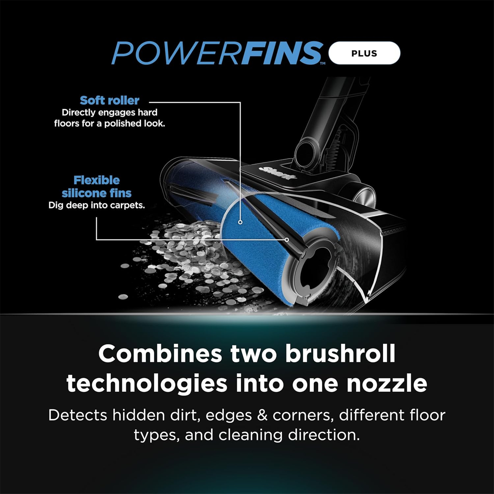Packed with powerful suction, this cordless vacuum deep-cleans floors and carpets, capturing dirt, debris and hair with its PowerFins Plus brushroll.
