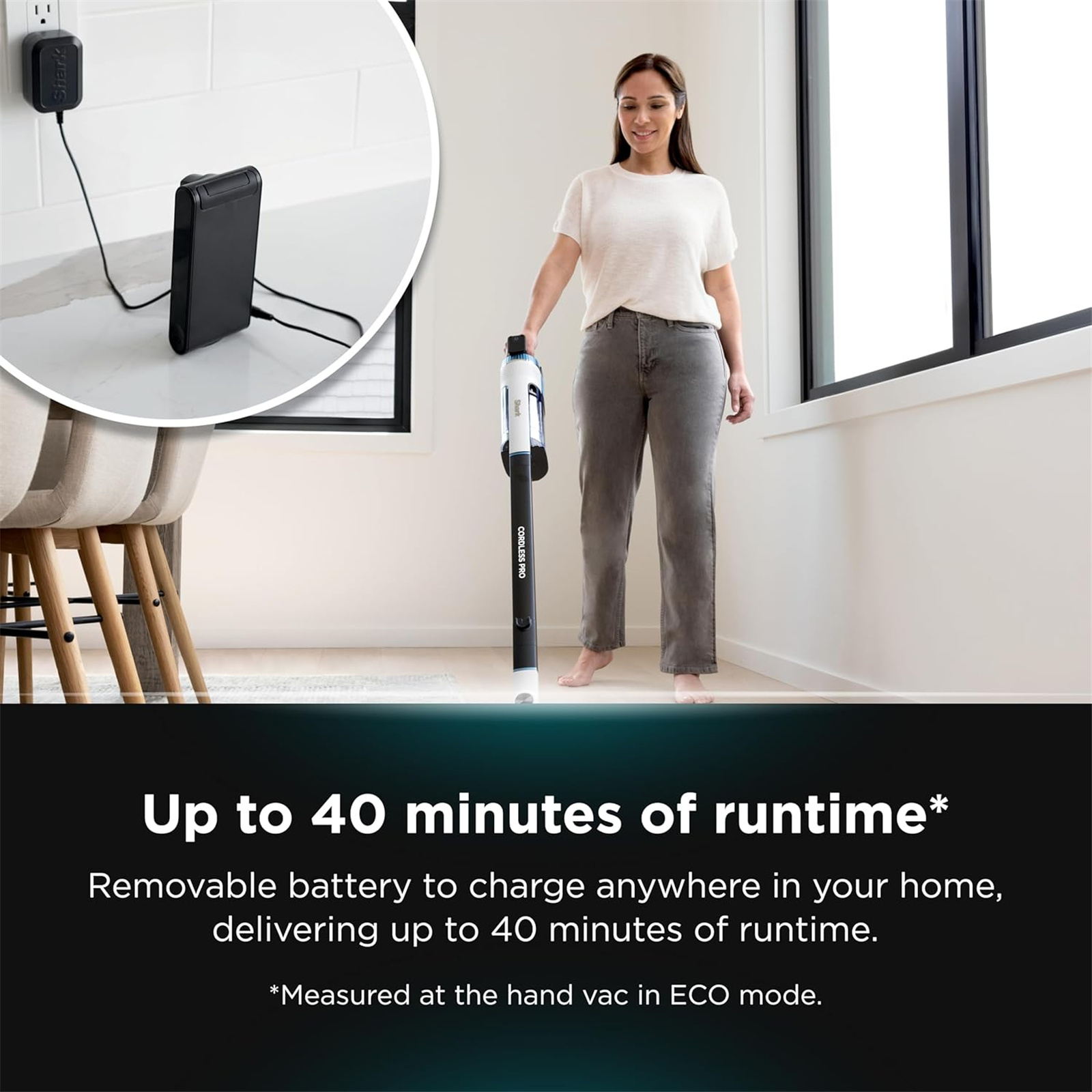 Removable battery can charge anywhere in your home, delivering up to 40 minutes of runtime. Re-charge the removable battery pack on
