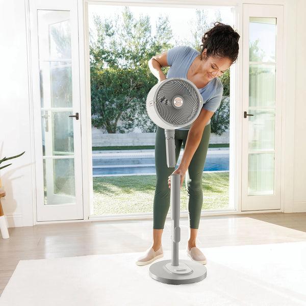 With the click of button, you can turn your pedestal fan into a tabletop fan.