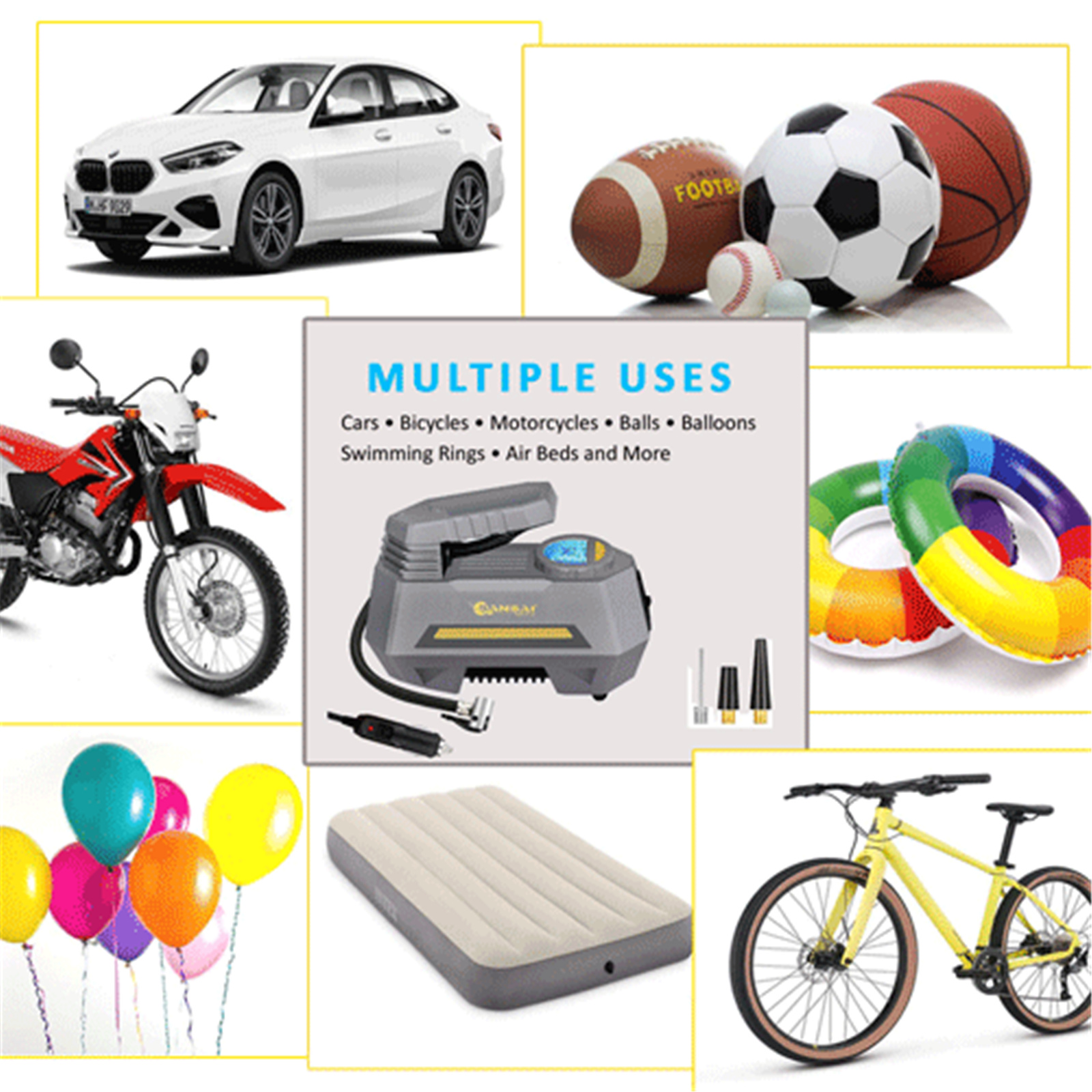 3 Nozzles and Extra Fuse Included. Inflates any cars, SUVs, motorcycles, and bicycles.