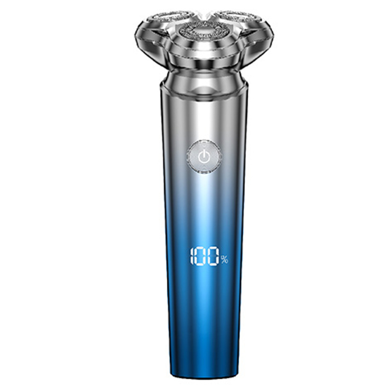 3D floating electric razor with dual-track stainless steel blades that follow the contours of the face, neck, and chin for a fast, clean shave.