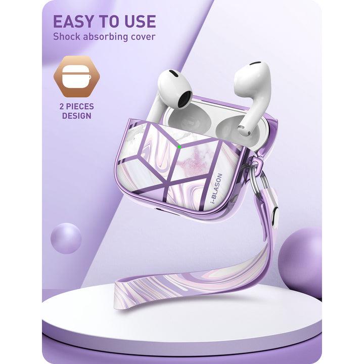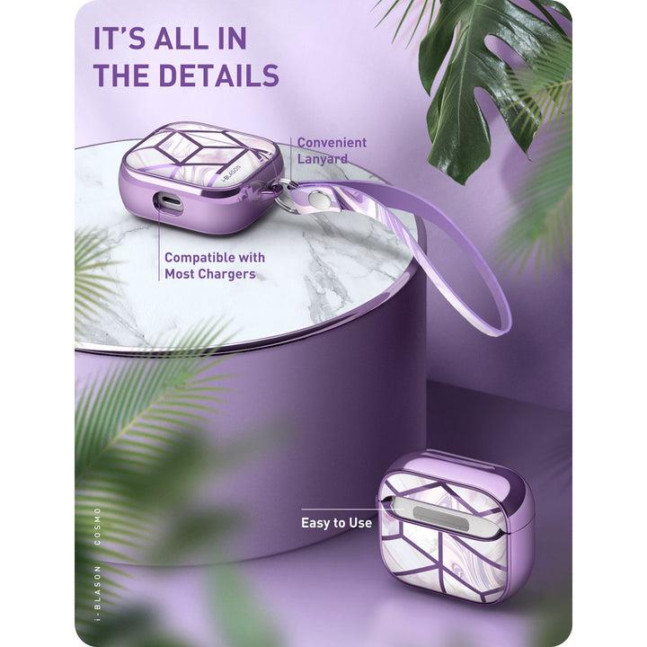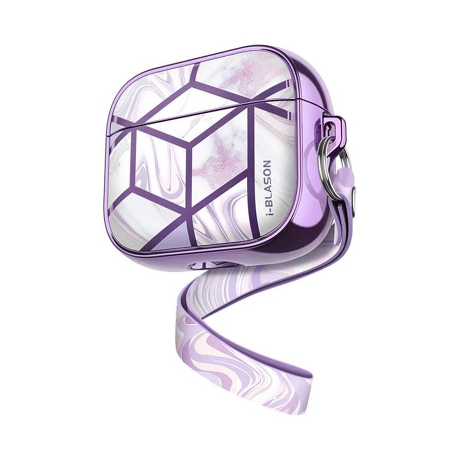 i-Blason Cosmo Case for AirPods 3rd Gen - Marble Amethyst Purple - with wrist strap - Premium & beautiful protective fashion case for Apple AirPods 3rd Generation