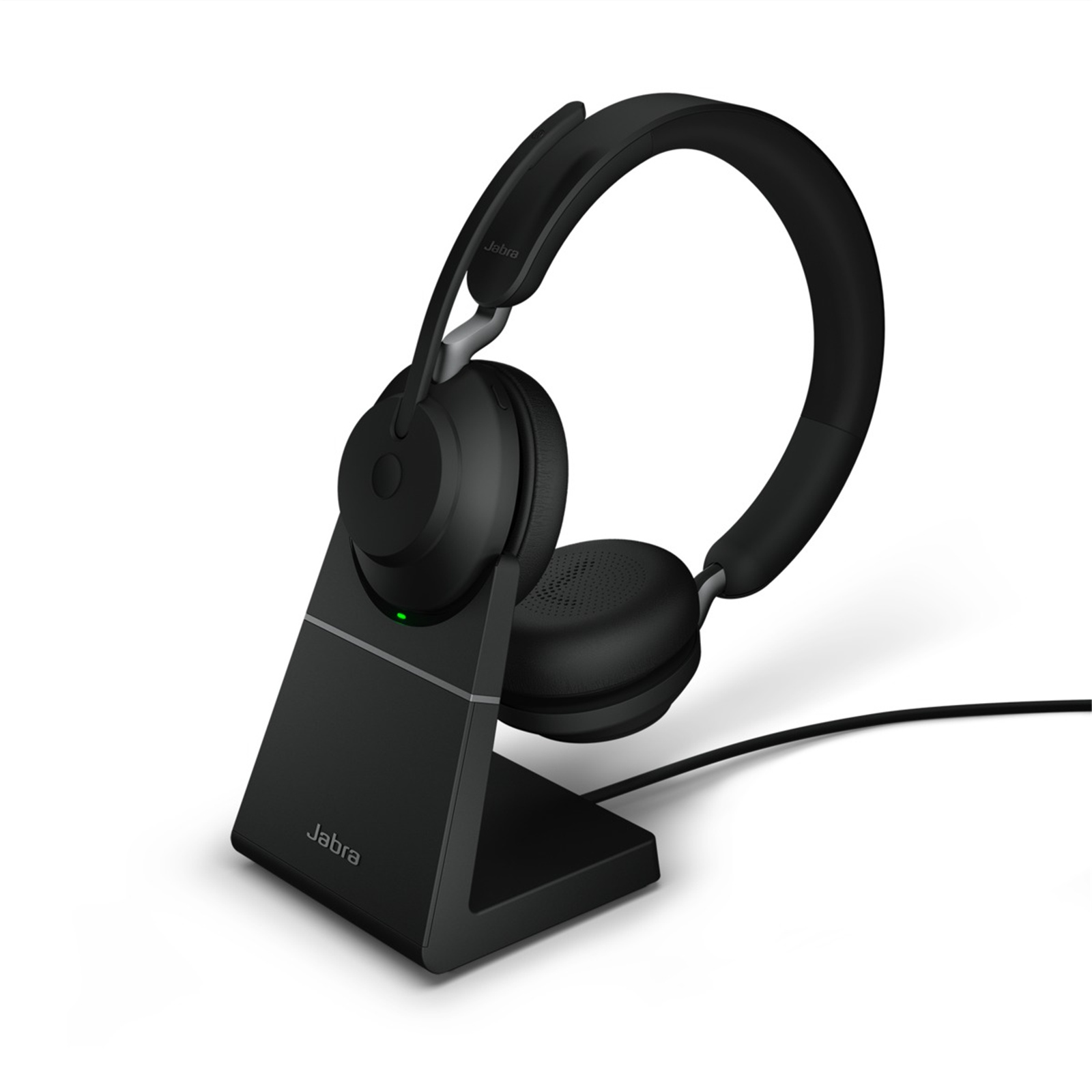 - Charging stand for the Jabra Evolve2 65 Mono and Stereo headsets