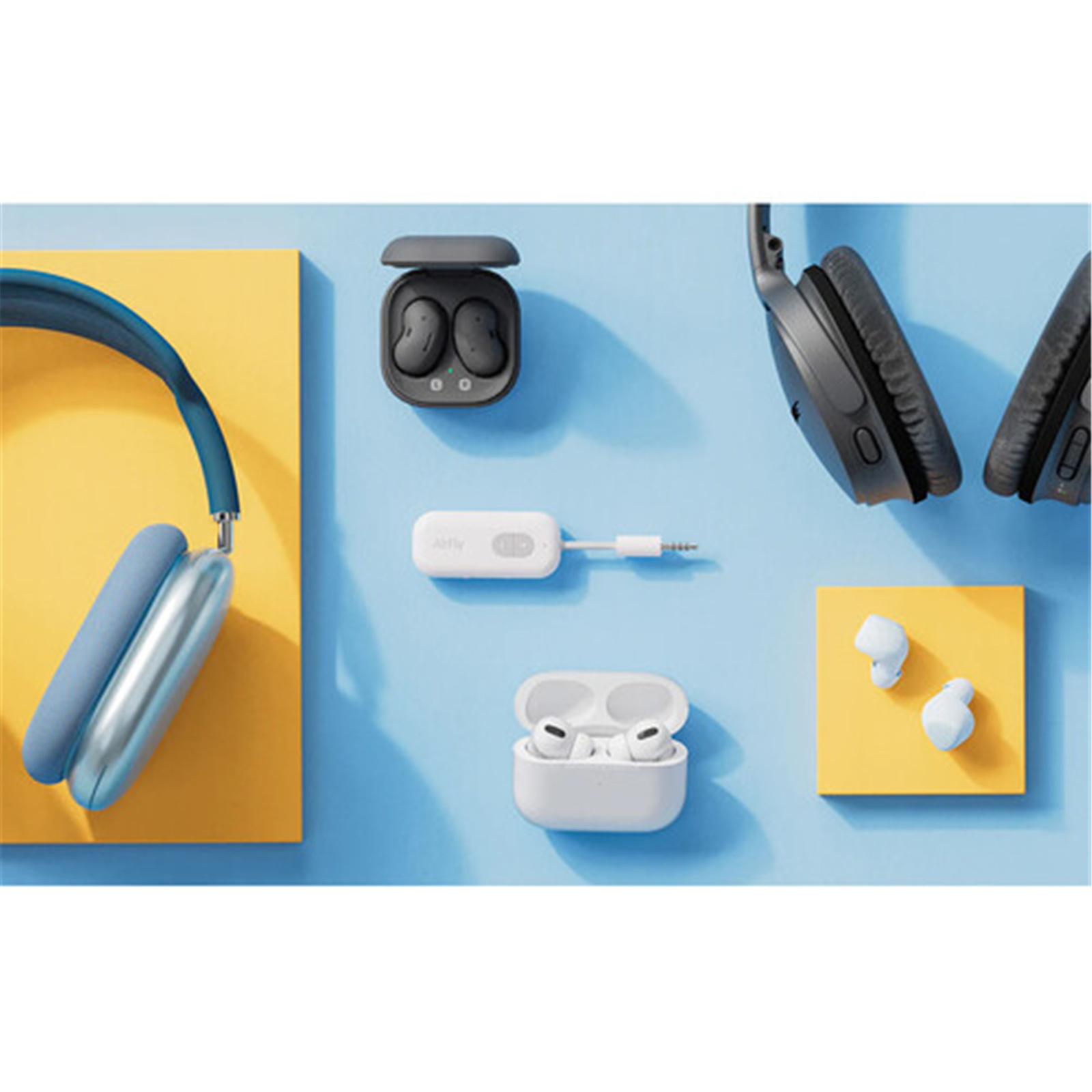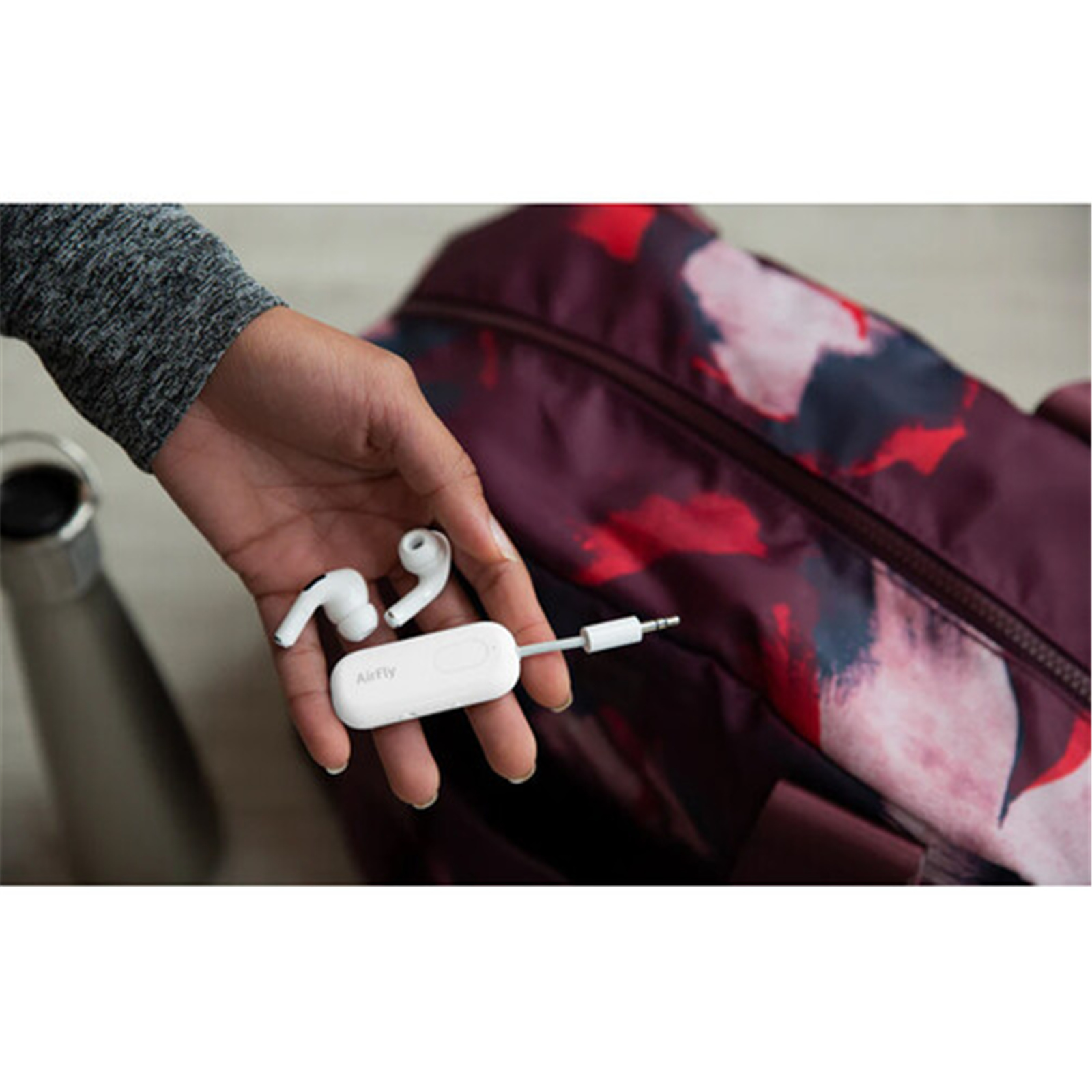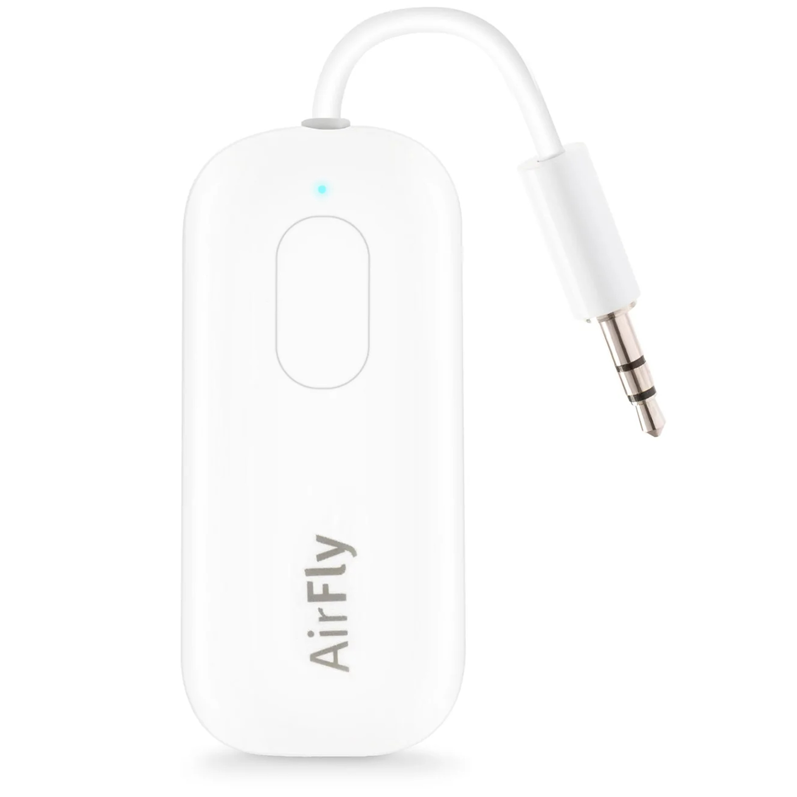 AirFly Duo lets two people listen to the same movie, podcast, or music with their favorite wireless headphones or earbuds. AirFly Pro adds the ability to stream music from your iPhone to an AUX IN in a car or speaker.