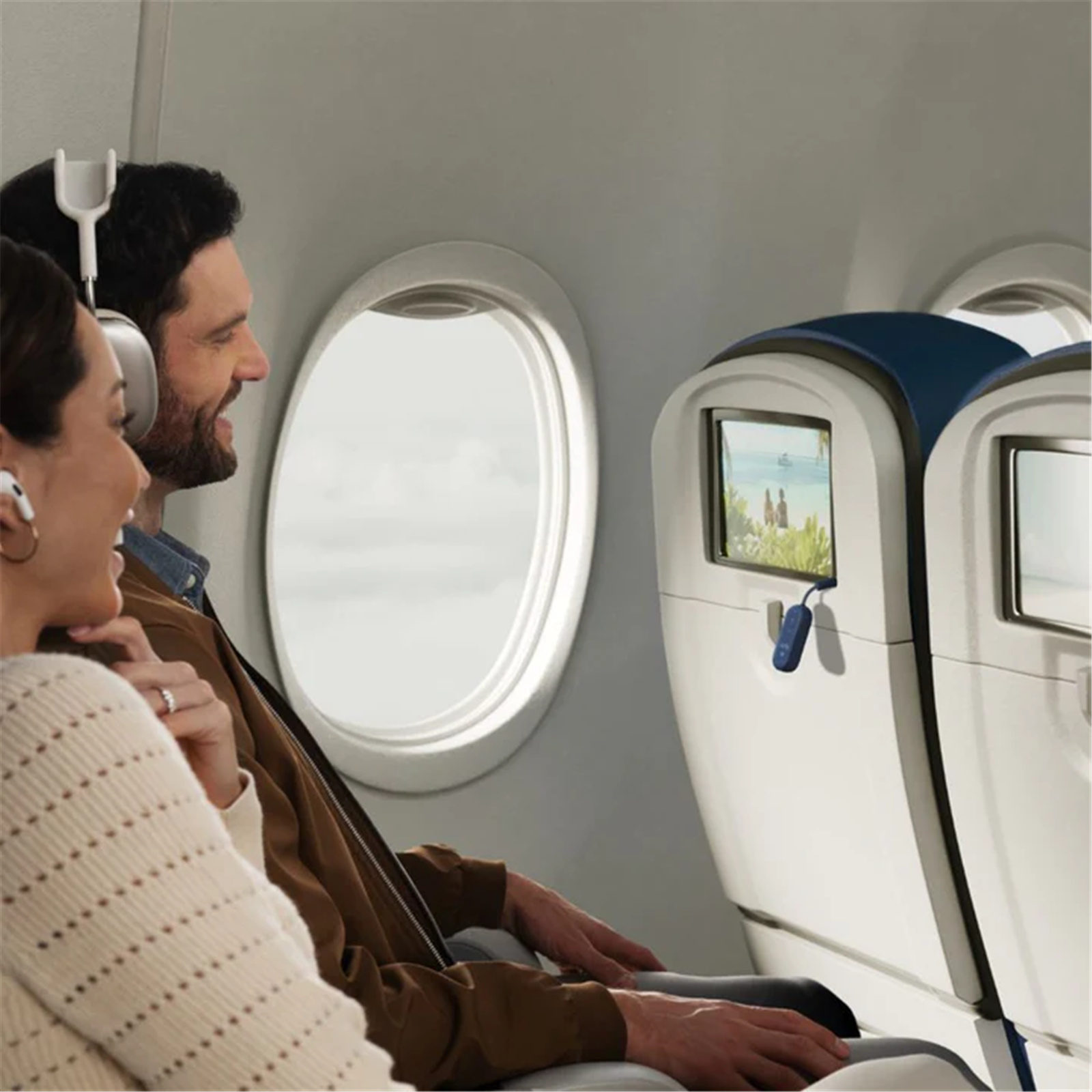 - Enjoy in-flight entertainment with your favorite wireless headphones