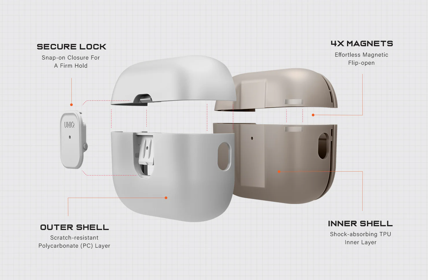 Clyde's precision lock keeps your AirPods sealed tight, guarding against drops, slips, and accidental openings.
