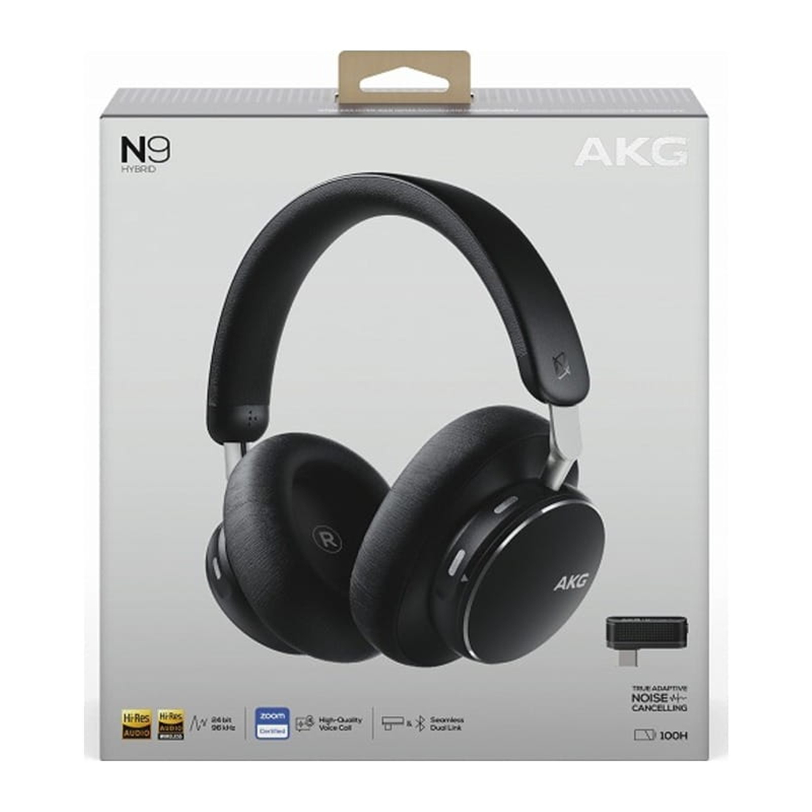 AKG N9 Hybrid Premium Wireless Over-Ear Noise Cancelling Headphones - Black Powerful Adaptive ANC + Hi-Res Audio with LDAC + Zoom Certified for Professional Voice Calls - Integrated USB-C Dongle- Premium Materials & Sound - Up to 55hrs Batt