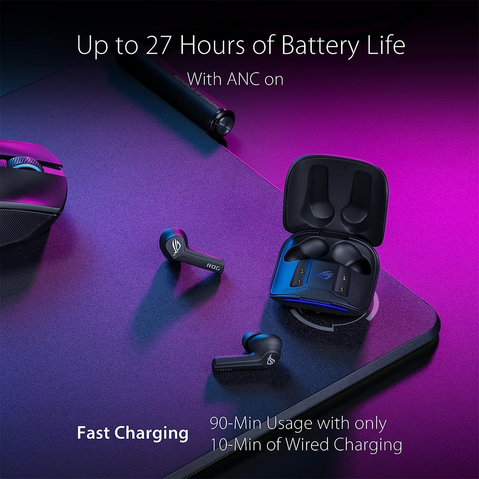 ASUS ROG Cetra True Wireless Noise Cancelling Gaming Earbuds - Black Bluetooth 5.0 - 4.5 Hours Battery Life / 17 Hours Total with Charging Case & ANC