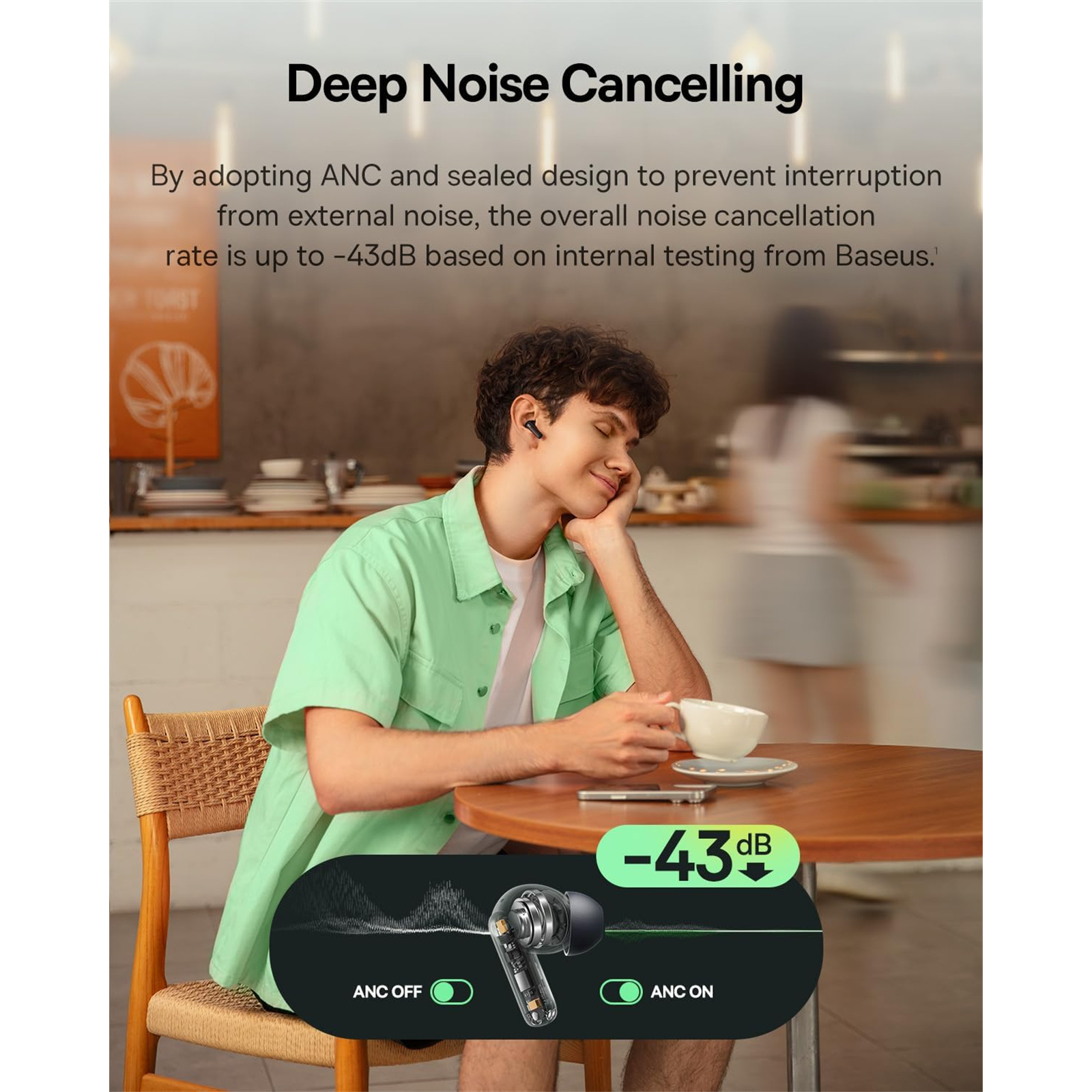 With powerful Hybrid ANC technology at -43dB, this noise cancelling earbuds effectively block out external noise, creating a quiet listening environment perfect for travel, noisy offices, or intense workout sessions. Simply activate ANC to transform any setting into your own immersive audio sanctuary.