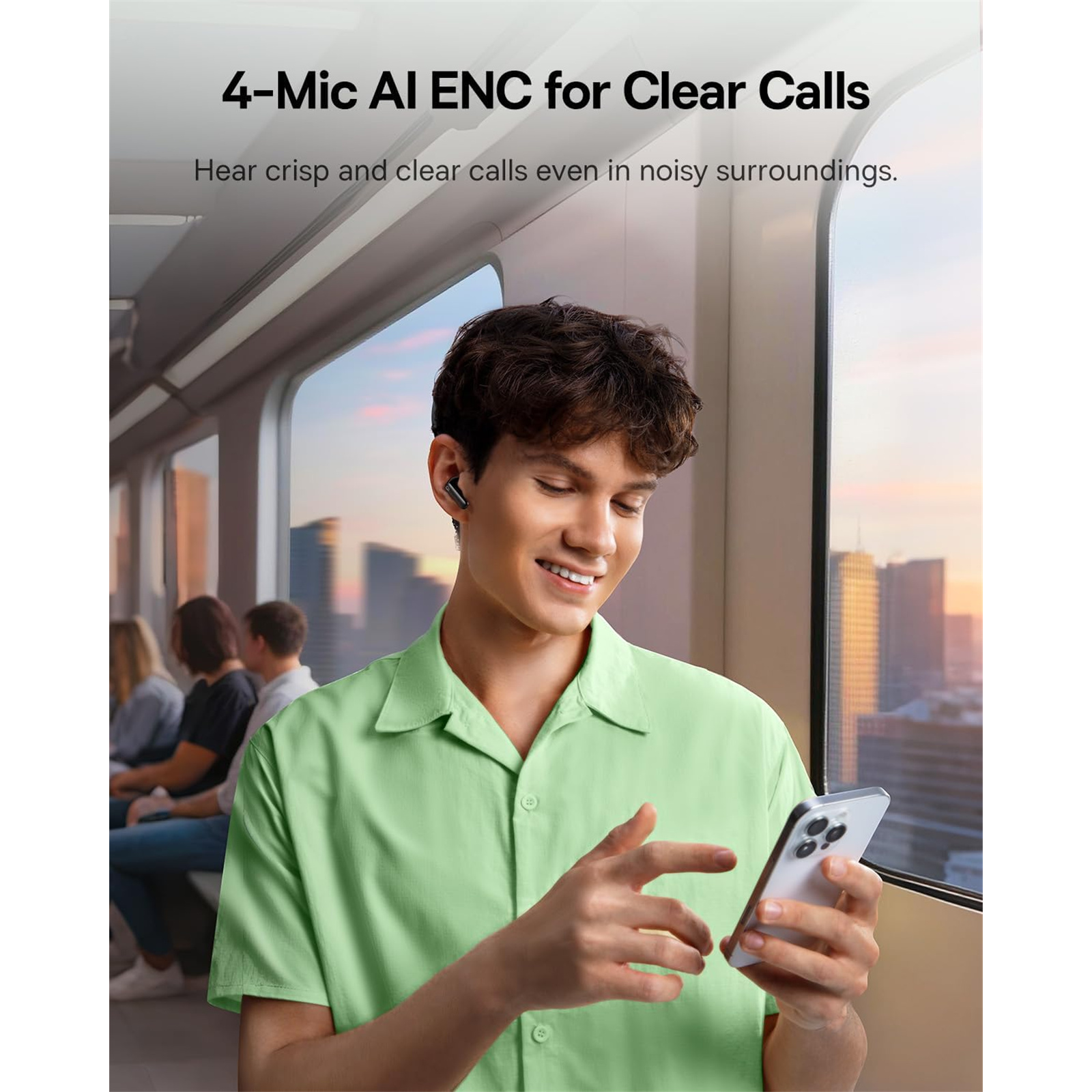 These Bluetooth earbuds feature 4-mic AI ENC technology that effectively isolates your pure voice from distractive background noise, ensuring your voice remains clear and crisp during every call whether you're in meetings, commuting, or outdoors in windy conditions.